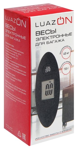 Багажные весы LuazON LV-404 имеют функцию автоматического выключения и индикацию разряда батареи. Имеют LCD-дисплей.