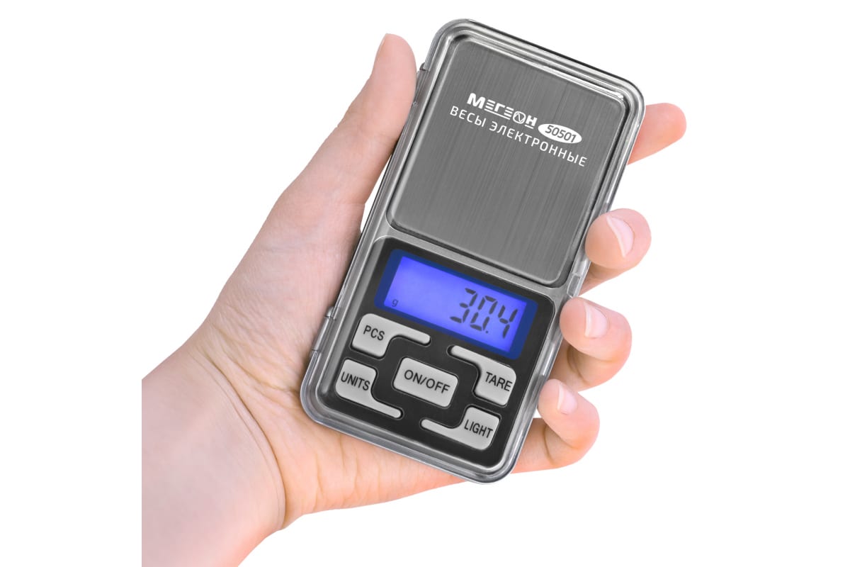 МЕГЕОН 50501 - новинка в модельном ряду бытовых электронных весов с диапазоном измерения 0,01 ... 500 грамм. Модель имеет компактные размеры и маленький вес, позволяющие переносить весы в кармане брюк. Благодаря функции автотестирования после включения и пяти единицам измерения достигается максимальное удобство в эксплуатации, а также применение их в большом количестве сфер деятельности человека от производства до домашнего использования. При помощи режима расчёта количества упрощается фасовка различной мелкой сыпучей продукции, например: бисера. Высокое качество комплектующих обеспечивает низкие показатели базовой погрешности при взвешивании. Наличие интегрированной подсветки ЖК- дисплея гарантирует устойчивое чтение полученных значений даже в условиях недостаточной видимости. Прибор по достоинству оценят профессионалы и любители.