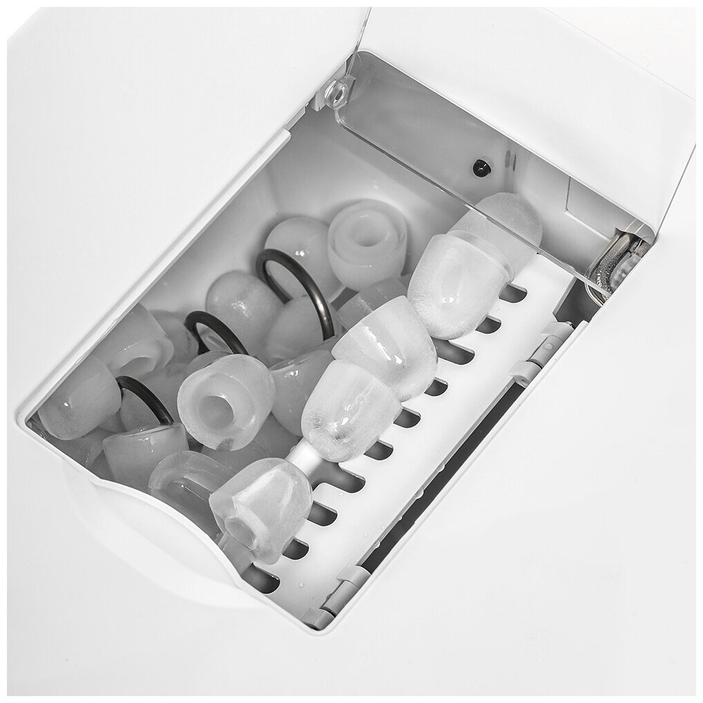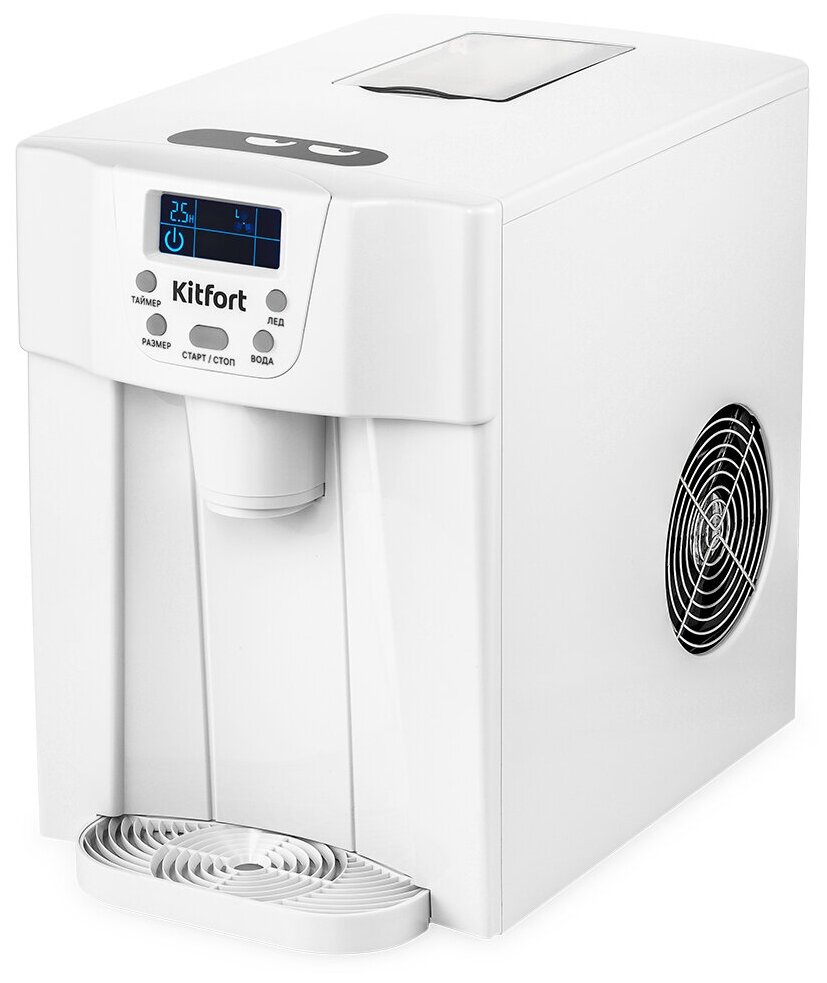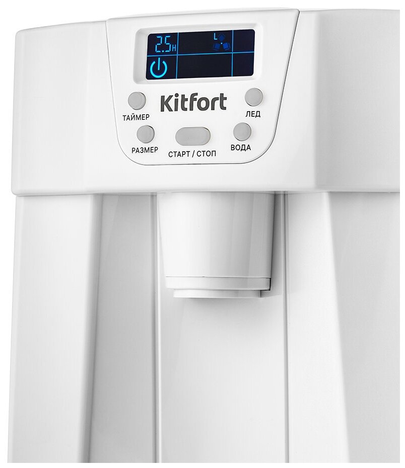Лёд получается в форме напёрстков. Такая форма хорошо измельчается блендером для приготовления коктейлей и хорошо остужает напитки. Размер льда можно регулировать на панели управления.Электропитание