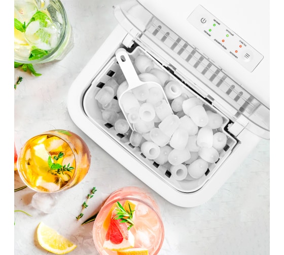 Для простого ухода за льдогенератором предусмотрена функция автоматической очистки. Большое преимущество льдогенератора состоит в том, что лед делается быстро. В обычной форме в морозилке лед замораживается несколько часов, а если его надо много, то нужно ставить несколько форм. Чтобы был запас льда, его нужно хранить в морозилке — пропадает ее полезный объем. Быстрое создание льда позволит вам быстро охладить напитки, приготовить коктейли или холодный кофе, приготовить смузи со льдом.
