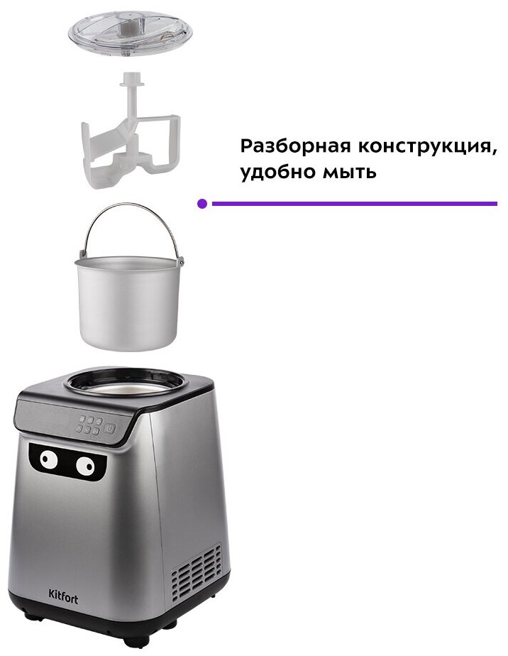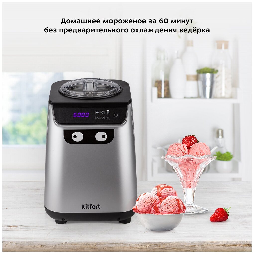 Автоматическая мороженица Kitfort КТ-1825 поможет приготовить вам настоящее мороженое из натуральных продуктов, а также сорбет, джелато и замороженный йогурт.