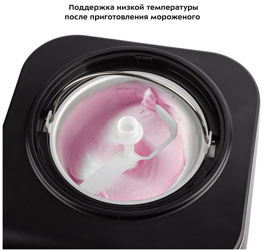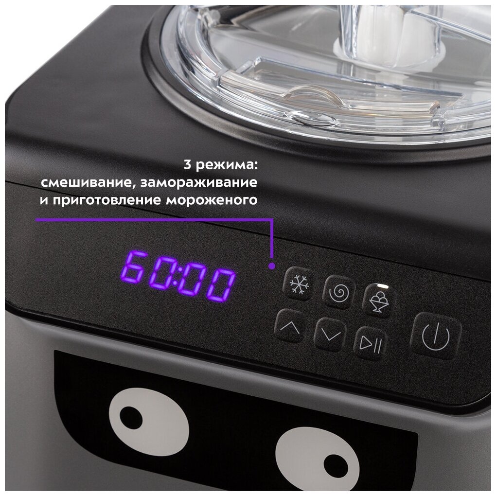 В мороженице есть три режима работы: смешивание, замораживание, приготовление мороженого. Чтобы мороженое не таяло, есть функция поддержания низкой температуры.