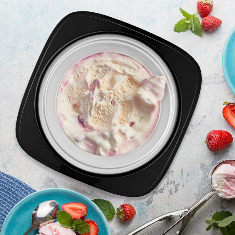 Кнопки «Меньше» и «Больше» переключают время приготовления мороженого от 5 до 45 минут.Электропитание