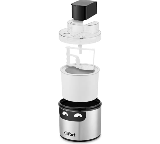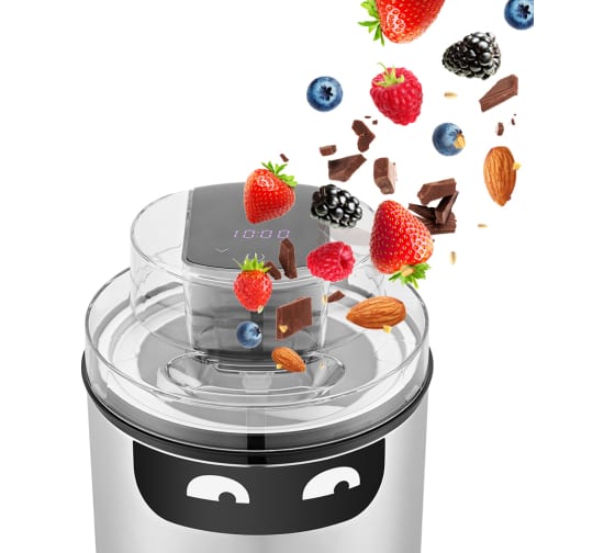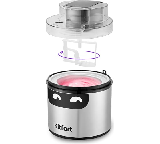 Крышка мороженицы изготовлена из прозрачного пластика, благодаря чему можно наблюдать за процессом. Для удобства добавления ингредиентов и топпингов в процессе приготовления в крышке есть загрузочное отверстие.