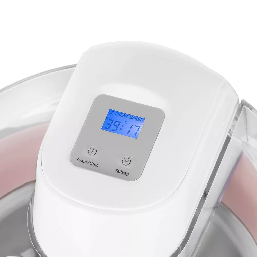 Кнопка «Старт/Стоп» включает и отключает мороженицу. Кнопка «Таймер» циклически переключает время приготовления мороженого. Вы можете установить время приготовления от 5 до 45 минут с шагом 5 минут.