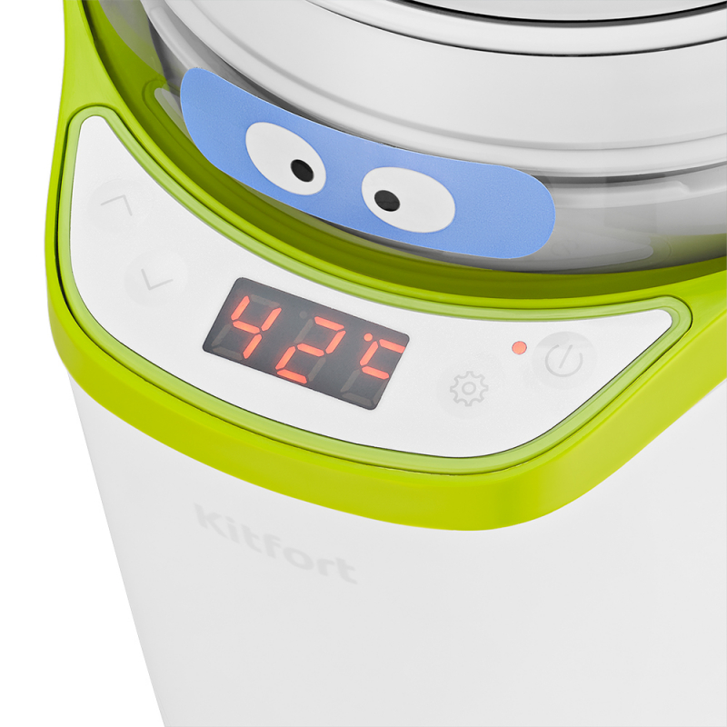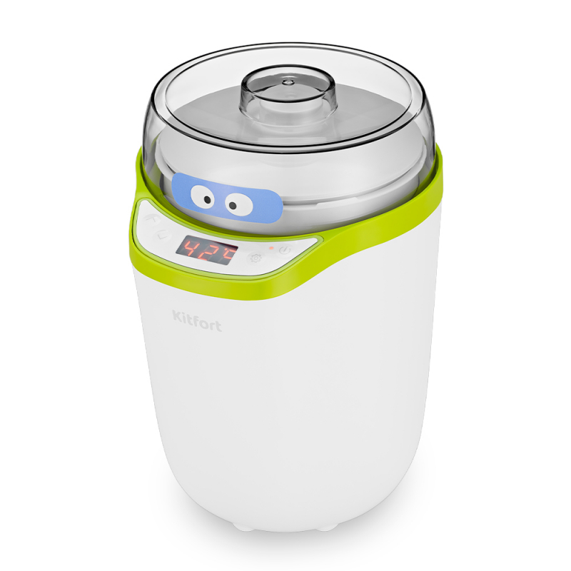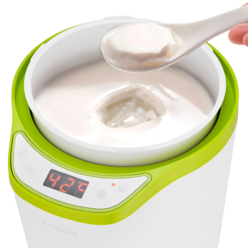Йогуртница КТ-2077 предназначена для приготовления вкусного и полезного домашнего йогурта. Смешайте молоко и закваску в контейнере, установите контейнер в йогуртницу, выберете подходящую программу или выставьте время и t, затем нажмите кнопку включения.