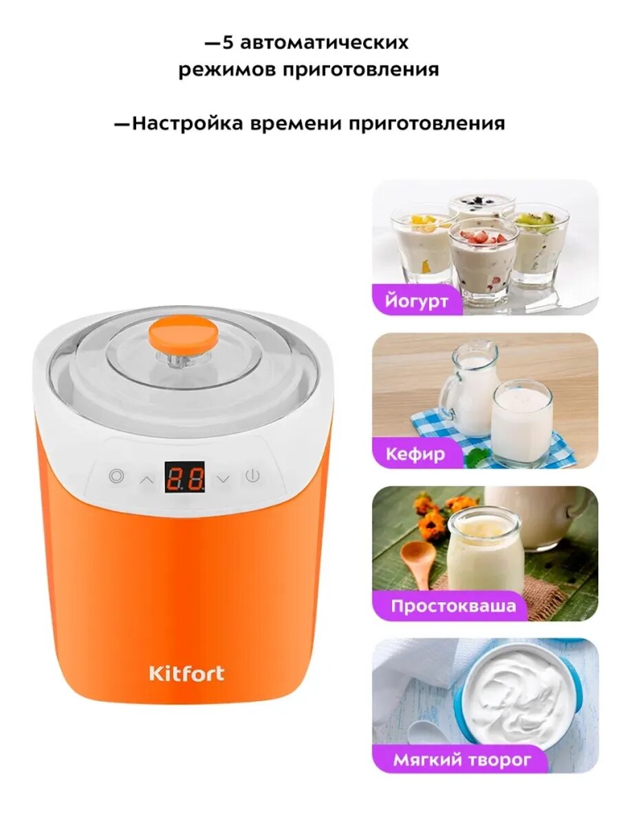 Йогуртница КТ-4090 предназначена для приготовления вкусного и полезного домашнего йогурта. Помимо йогурта в домашних условиях вы можете приготовить творог, сливочный сыр, кефир или простоквашу.