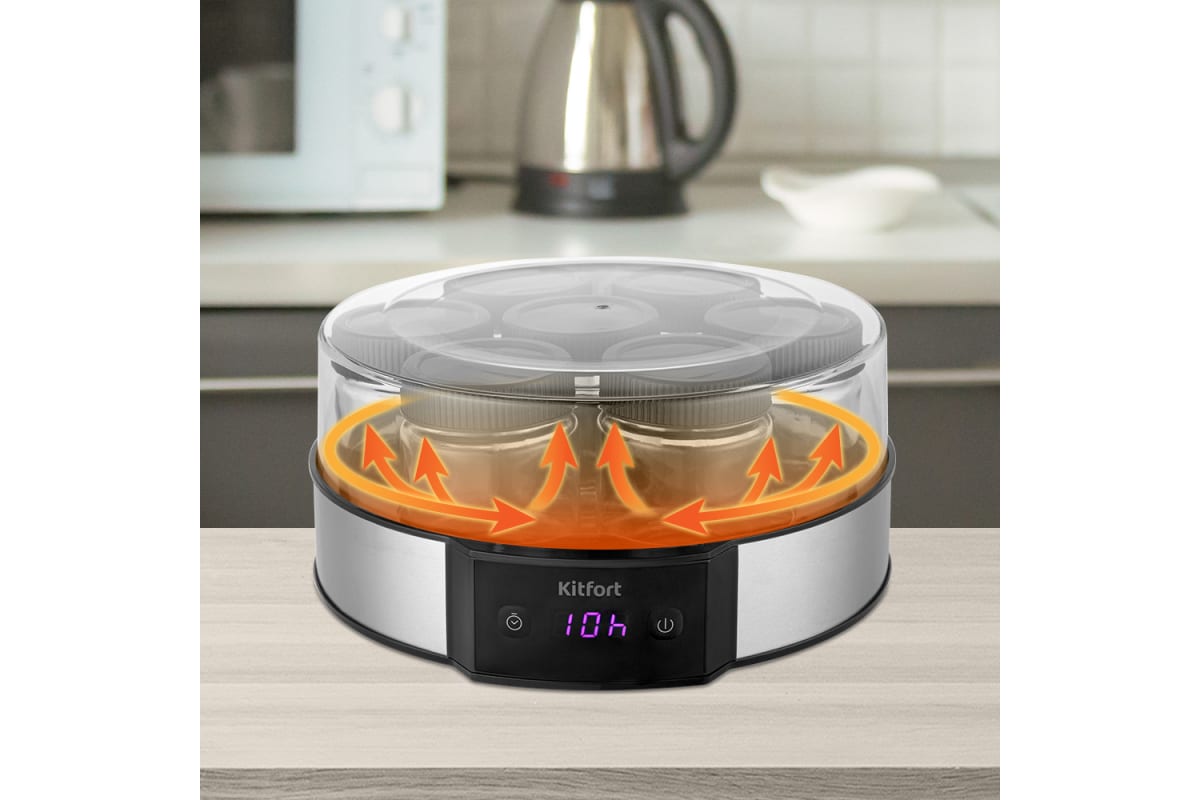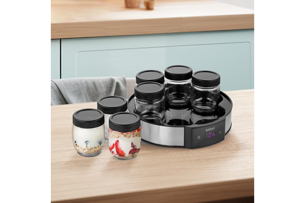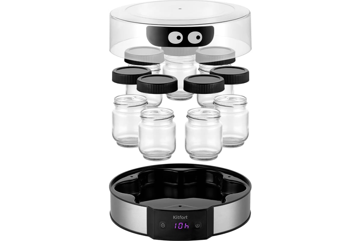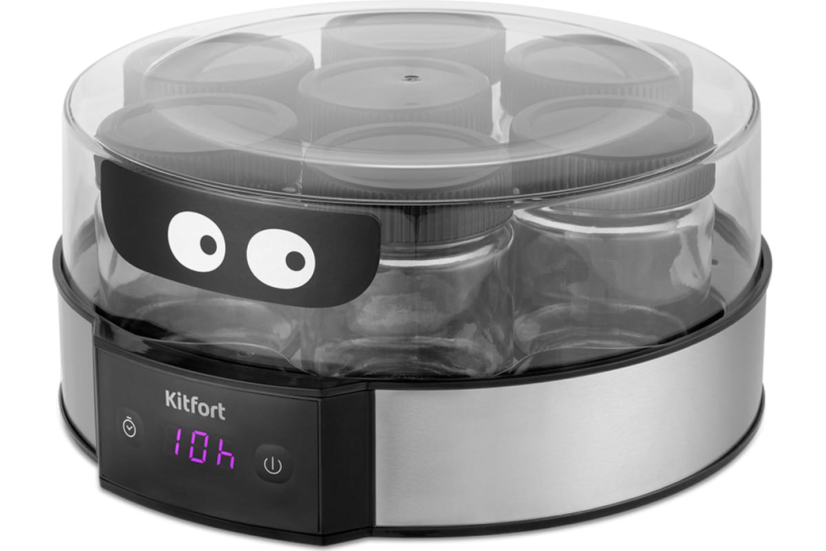 Йогуртница КТ-6295 предназначена для приготовления вкусного и полезного домашнего йогурта. Прибор укомплектован 7 стеклянными баночками по 190 мл каждая, в которых готовый йогурт можно хранить в холодильнике. Йогуртница равномерно нагревает баночки с ингредиентами, поддерживая заданную температуру.