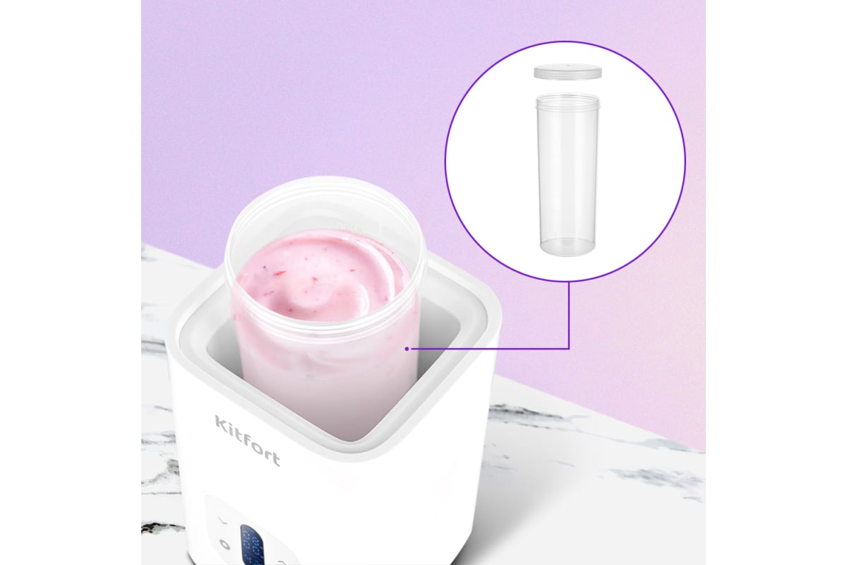Йогуртница КТ-6298 предназначена для приготовления вкусного и полезного домашнего йогурта. Прибор укомплектован пластиковой банкой на 1 л с крышкой, в котором готовый йогурт можно хранить в холодильнике. Йогуртница равномерно нагревает банку с ингредиентами, поддерживая заданную температуру.