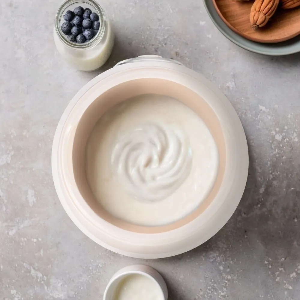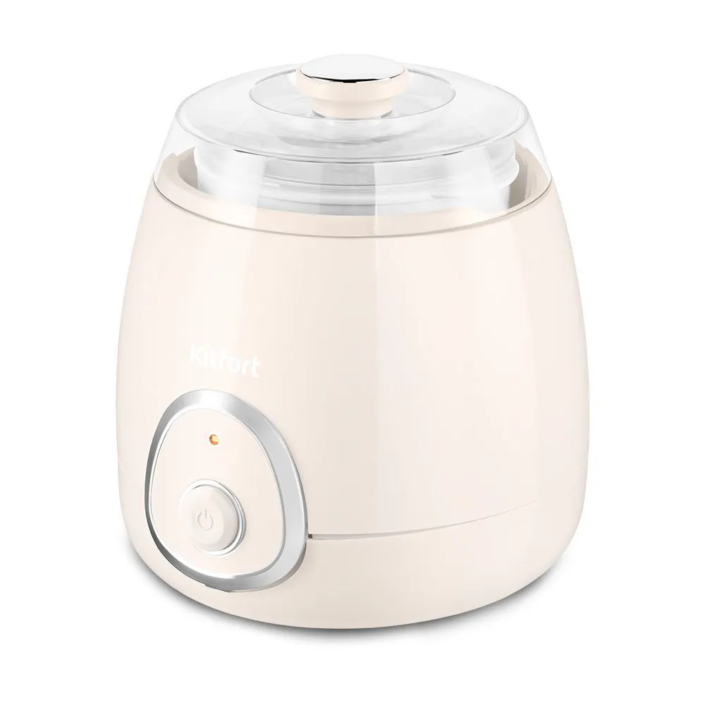 Прибор укомплектован чашей ёмкостью 1 литр с прозрачной крышкой. Готовый йогурт можно хранить в холодильнике прямо в чаше. Йогуртница равномерно нагревает чашу с ингредиентами, поддерживая необходимую температуру.