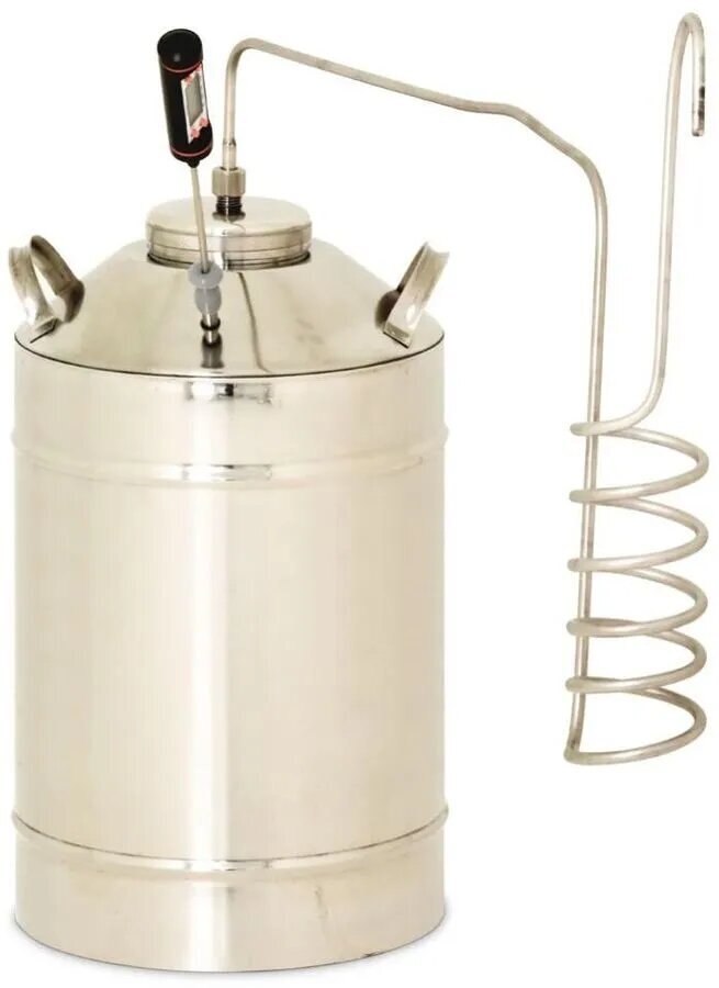 Особенности Оборудован разъёмом под цифровой термометр. Контроль температуры внутри перегонного куба значительно облегчает отделение тела самогона от головных и хвостовых фракций.