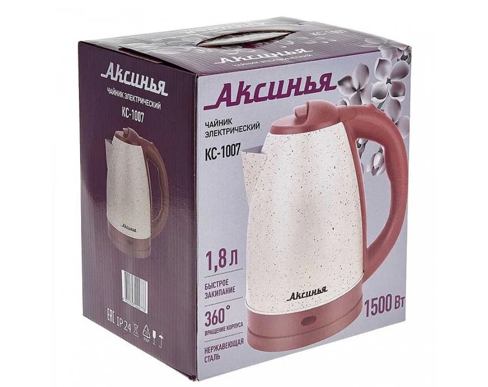 Чайник электрический АКСИНЬЯ КС-1007, 1500 Вт, 1,8 л. Имеет лаконичный дизайн, что позволит установить и использовать его не только на домашней кухне, но и в офисе. Кроме того, чайник довольно функционален и удобен. Чайник электрический предназначен для нагрева воды в бытовых и аналогичных условиях.