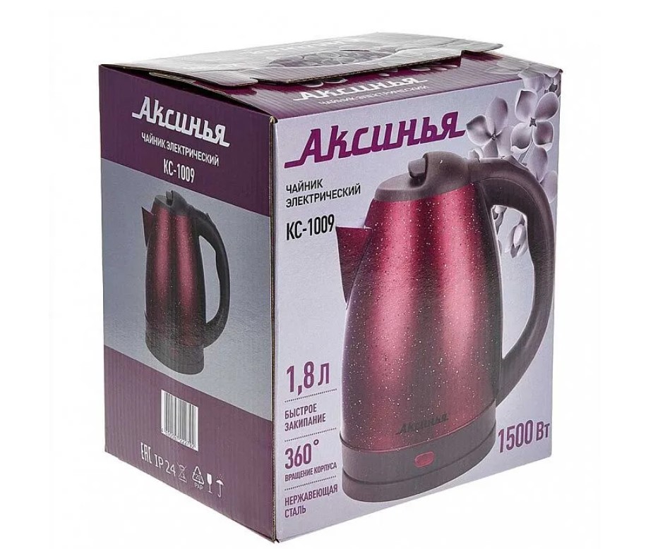 Чайник электрический АКСИНЬЯ КС-1009, 1500 Вт, 1,8 л. Чайник электрический предназначен для нагрева воды в бытовых и аналогичных условиях.