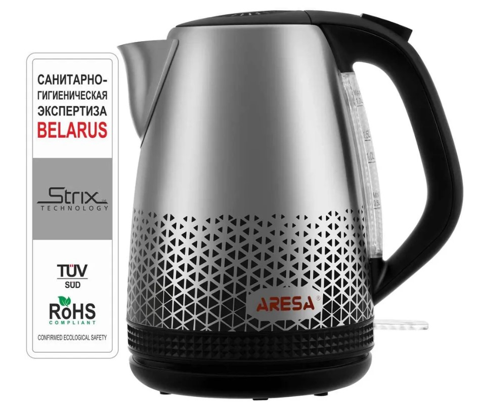 Чайник электрический ARESA AR-3462, объемом 1,7 л.– прибор который соответствует всем сертификационным нормам. Чайник ARESA AR-3462 прошел контроль в лаборатории при Министерстве Здравоохранения Республики Беларусь и не выделяет в воду вредных веществ. Модель может быть использована при приготовлении смесей для детского питания.