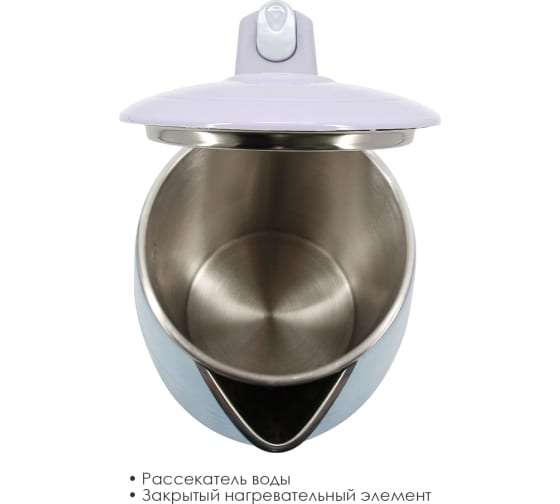 Корпус чайника выполнен по новой технологии композиции нержавеющей стали и пластика.