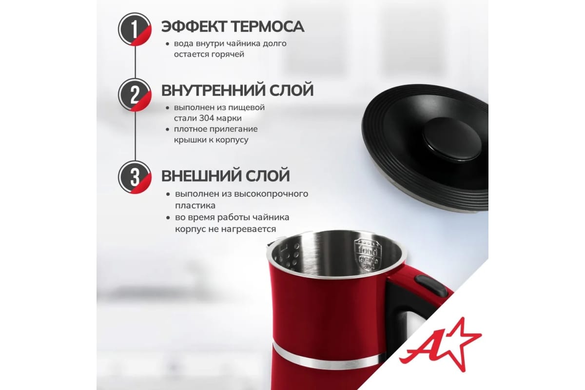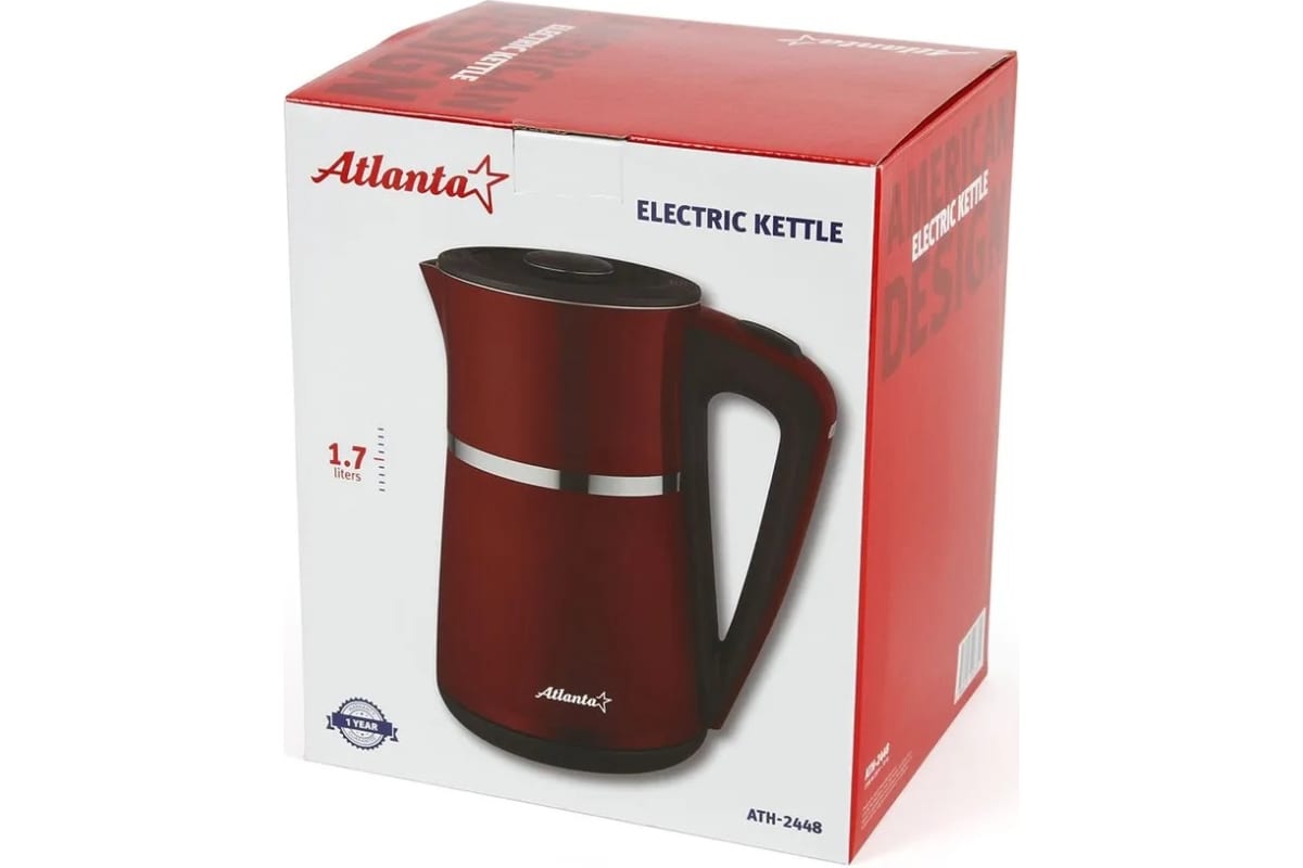 Электрический двухстенный чайник Atlanta ATH-2448 bordo предназначен для использования в офисе или дома.