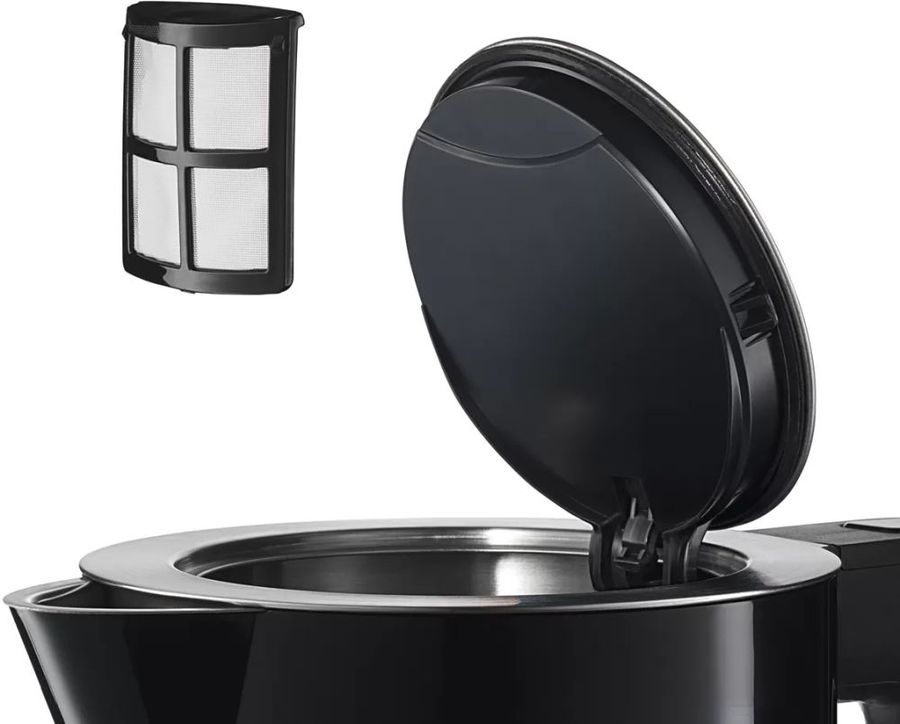 мощность 2200Вт; объем 1.7л; корпус нержавеющая сталь и пластик; фильтр от накипи, регулировка температуры; сигнал при закипании цвет черный