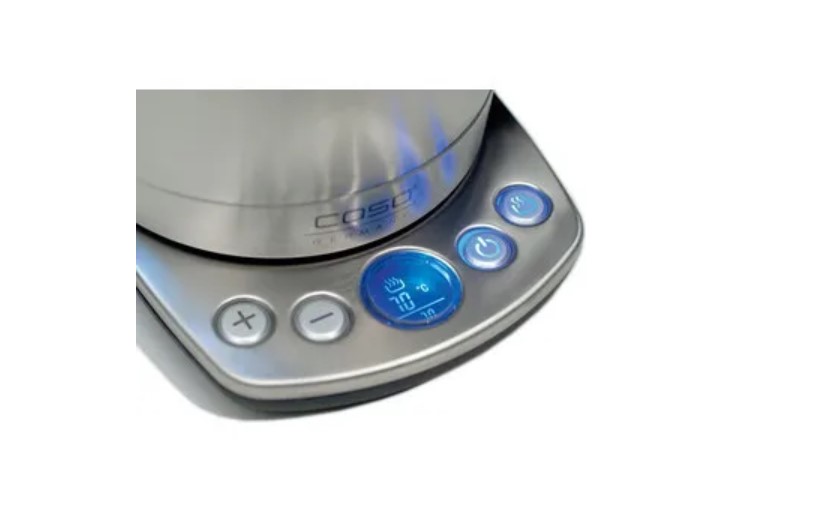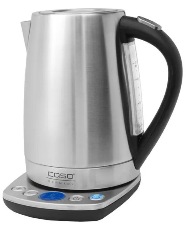 Электрочайник CASO WK 2200. Максимальная емкость 1.7 литра. Электронная установка температуры нагрева от 40 °C до 100 °С с интервалом 10 °C. Звуковой сигнал при достижении заранее выбранной температуры. Поддержание установленного уровня температуры. Дисплей с указанием установленной температуры. Безопасная крышка открывается нажатием кнопки. Скрытый нагревательный элемент из нержавеющей стали. Автоматическое отключение при снятии с подставки. Защита от перегрева (включения без воды).