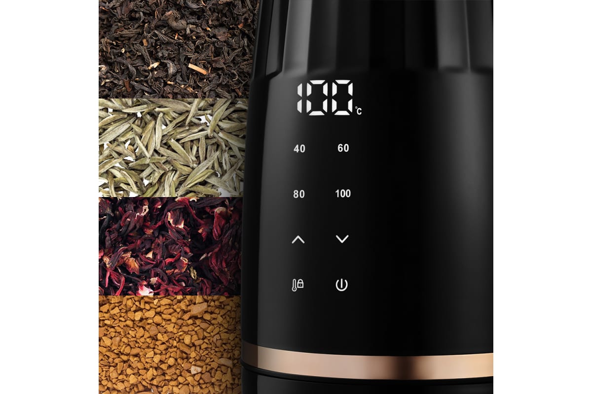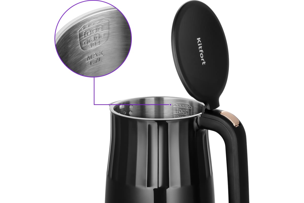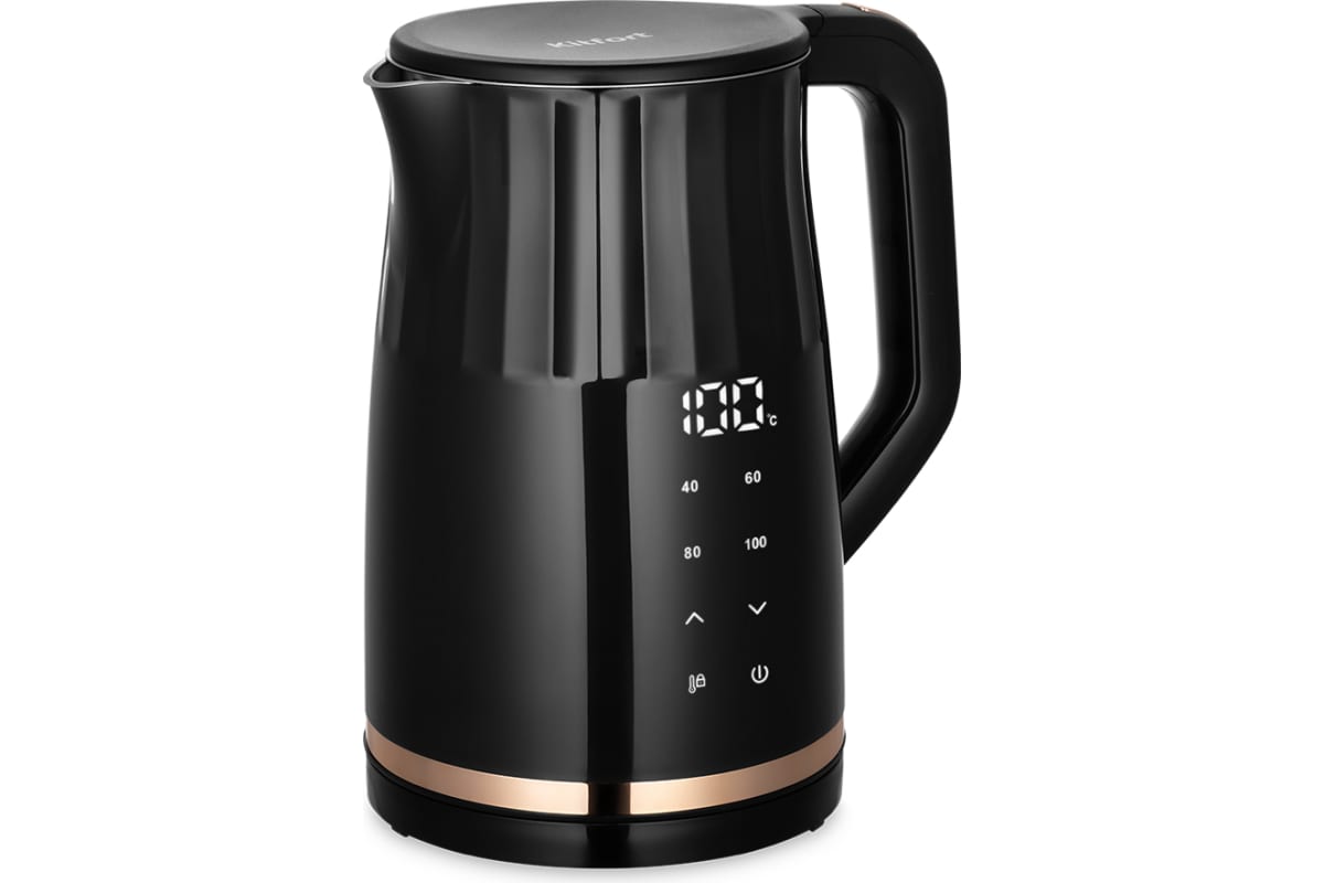 Электрический чайник КТ-6610 - отличное решение для ежедневного использования или особых моментов с родными и друзьями. Благодаря оригинальному дизайну он станет украшением вашей кухни. Раскрывайте вкус и аромат любимого чая! Вы можете выбрать 4 режима нагрева или самостоятельно настроить t °С от 40 до 95 °С с шагом 5 °С. Это крайне удобно для правильного заваривания разных сортов чая. Управление сенсорное, LED-дисплей показывает текущую t °С или заданную t °С нагрева. Сохраняет напиток горячим! Чайник оснащён функцией поддержания t °С в течение 2 ч на заданном уровне. Температура задаётся либо кнопками выбора: 40, 60, 80 или 100°С, либо с помощью кнопок “Больше” или “Меньше” на панели управления. Удобное добавление воды Горлышко большого диаметра и широко открывающаяся крышка позволяют легко наполнять водой, а также чистить чайник. Отметка максимального уровня воды располагается на внутренней поверхности прибора. Изнутри крышка и корпус выполнены из нержавеющей стали. Важные детали Чайник имеет широкий носик, который даёт хорошую струю воды без брызг. Ручка пластиковая, не нагревается и удобно лежит в руке. Безопасная работа Подставка с центральным контактом даёт возможность располагать на ней чайник в любом положении, обеспечивая вращение на 360°. При закипании чайник автоматически отключается. Прибор имеет защиту от перегрева и от включения без воды. Компактное хранение На дне подставки имеется отсек для хранения шнура, чтобы его излишки не мешались на столе.