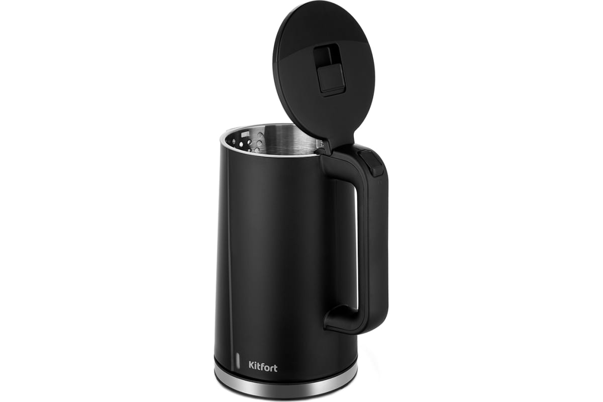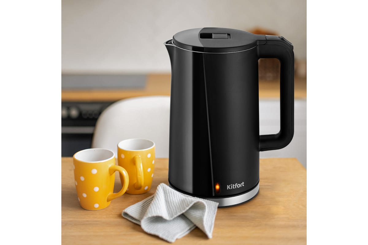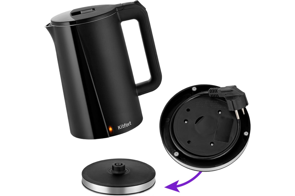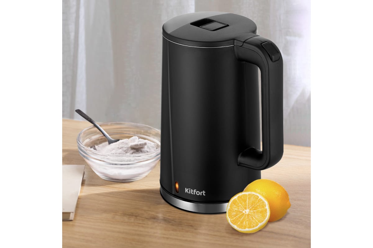В хорошем чае души не чаю! Электрический чайник Kitfort КТ-6612 предназначен для кипячения воды дома, в офисе, на даче. Полный чайник закипает примерно за 6 минут. Ёмкость 1,7 л. Удобство во всём! Корпус и крышка чайника изнутри выполнены из нержавеющей стали, а снаружи — из пластика. Максимальная отметка нанесена на внутреннюю часть корпуса. КТ-6612 имеет большое горлышко, что облегчает доступ внутрь при мытье. Простое управление Управление осуществляется с помощью кнопки «Вкл/Выкл», которая расположена на ручке. При включении чайника загорается индикатор нагрева. Ручка чайника пластиковая, не нагревается и удобно лежит в руке. Без лишних проводов Подставка с центральным контактом дает возможность располагать на ней чайник в любом положении, обеспечивая вращение на 360°. Снизу имеется отсек для хранения шнура, в который можно смотать излишки шнура электропитания, чтобы он не мешал на столе. Чистка и обслуживание Для увеличения срока службы чайника своевременно удаляйте накипь. Поместите в чайник специальное средство, залейте 0,5 л воды и доведите до кипения. После вскипятите в нем воду и слейте её. Для предотвращения накипи используйте фильтрованную воду.
