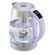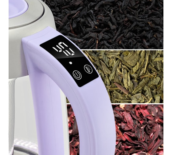 Корпус чайника выполнен из сочетания стекла, нержавеющей стали и пластика. Мерная шкала находится на внешней стороне корпуса. На ручке чайника расположена панель управления и LED-дисплей. На дисплее отображается текущая температура воды в чайнике, а при установке температуры — температура нагрева воды. Температура воды на дисплее отображается постоянно, что очень удобно. При включении чайника загорается подсветка, которая является индикатором работы и одновременно художественно подсвечивает воду в приборе. Цвет подсветки меняется в зависимости от температуры воды во время нагрева. В чайнике КТ-6624 есть заварочный фильтр. Вам нужно только засыпать чайные листья в фильтр, залить воду и выбрать температуру нагрева для данного сорта чая. Нагревательный элемент (ТЭН) у этой модели чайника скрытый и находится в донной части. Сверху он закрыт специальной металлической пластиной из нержавеющей стали, благодаря которой исключается прямой контакт ТЭНа с водой. Такая конструкция препятствует образованию накипи, облегчает уход и значительно снижает шум при нагревании воды. Подставка с центральным контактом дает возможность располагать на ней чайник в любом положении, обеспечивая вращение на 360°. Снизу подставки расположен отсек для хранения шнура, чтобы шнур не мешал на столе. Полный чайник закипает примерно за 5 минут. При закипании воды образующийся пар попадает в паропровод, проходит по нему и затем воздействует на термодатчик, который отключает чайник.
