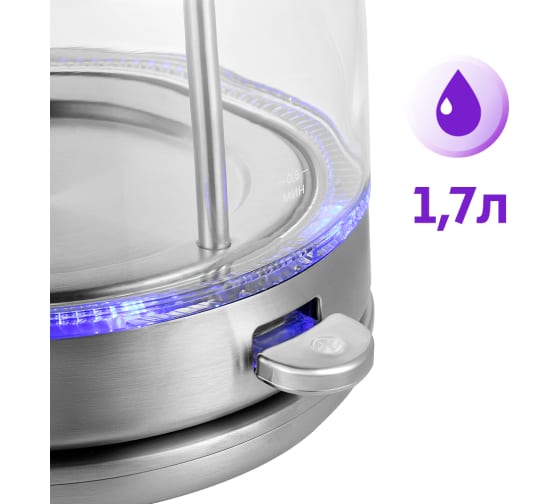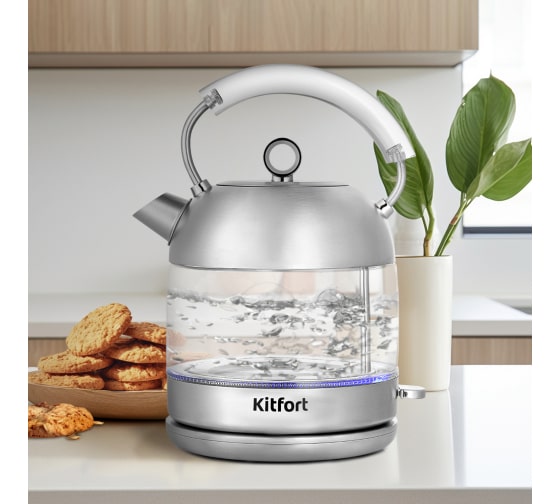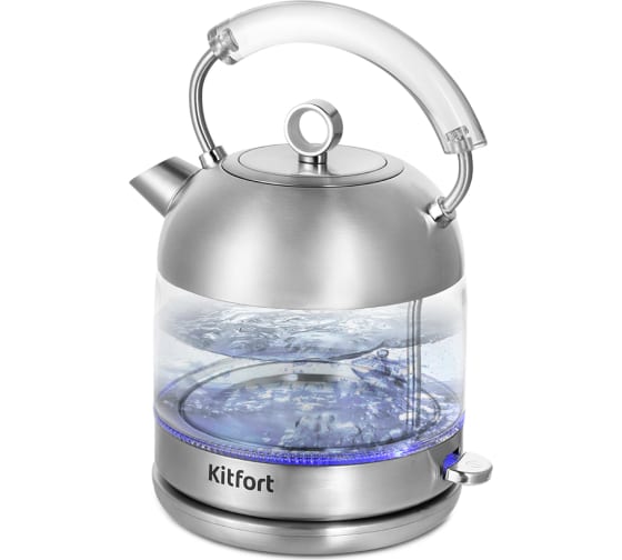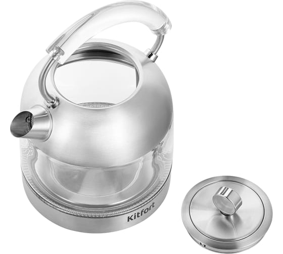 Электрический чайник Kitfort КТ-6630 предназначен для кипячения воды дома, в офисе, на даче. Корпус чайника выполнен из нержавеющей стали и стекла. Крышка и подставка выполнены из нержавеющей стали и пластмассы. Крышка чайника съемная. Силиконовая вставка в ручке крышки защищает от ожогов, если вы открываете крышку после закипания чайника. Отметки «МАКС» и «МИН» нанесены на стеклянную часть чайника. Ручка чайника пластиковая, не нагревается и удобно лежит в руке.