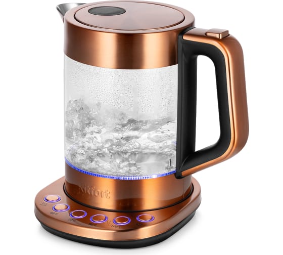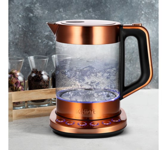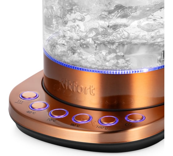 Приглашаю на чай! Электрический чайник с терморегулятором КТ-6657 может вскипятить воду, а также нагреть её до температуры 40, 70 и 90°С, что очень удобно для заваривания различных сортов чая. Чайник также оснащён функцией поддержания температуры. На подставке чайника имеется 6 кнопок для выбора и включения режимов нагрева. Каждая кнопка оснащена световым индикатором, который отображает статус выбранного режима работы.