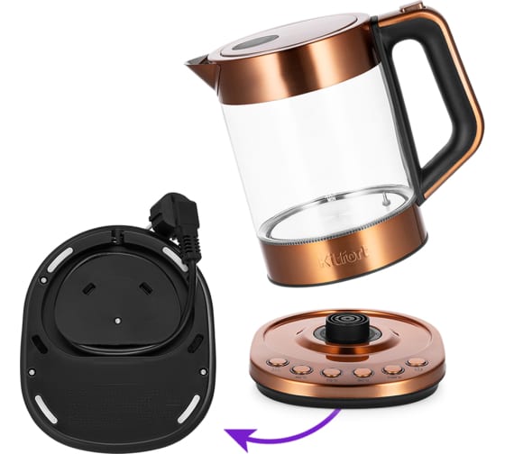 Подставка с центральным контактом дает возможность располагать на ней чайник в любом положении, обеспечивая вращение на 360°. Снизу имеется отсек для хранения шнура, в который можно смотать излишки шнура электропитания, чтобы он не мешал на столе. Если вы включите чайник без воды - защита от перегрева автоматически отключит прибор. Дайте чайнику остыть в течение 15 минут, прежде чем наполнять его.