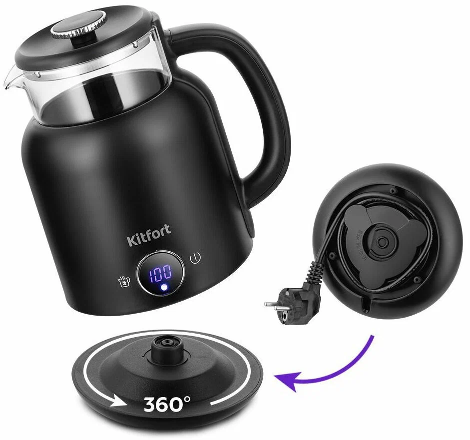 вращение на 360 градусов, дисплей, отсек для хранения шнура