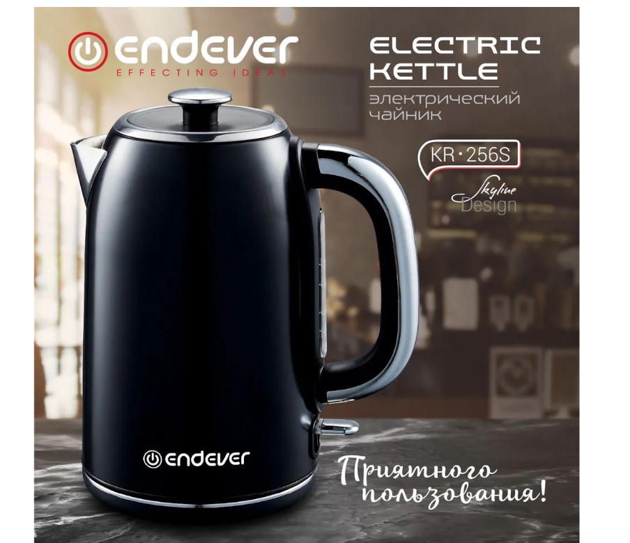 Электрический чайник Endever Skyline KR-256S в элегантном черном корпусе будет отлично смотреться на Вашей кухне.