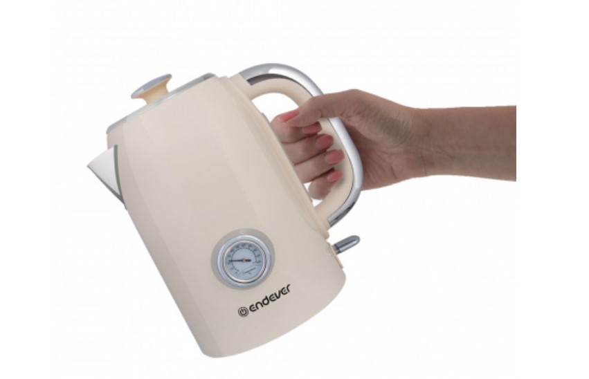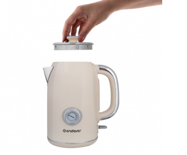 Беспроводное соединение позволяет вращать чайник на подставке на 360 градусов, Автоотключение при закипании и отсутствии воды, Встроенный термометр, Индикатор максимального уровня воды, Корпус из нержавеющей стали, Эргономичная ненагревающаяся ручка, Дисковый нагревательный элемент с высокой нагревательной способностью, Фильтр-сетка для защиты от накипи, Отсек для хранения шнура, Индикатор работы