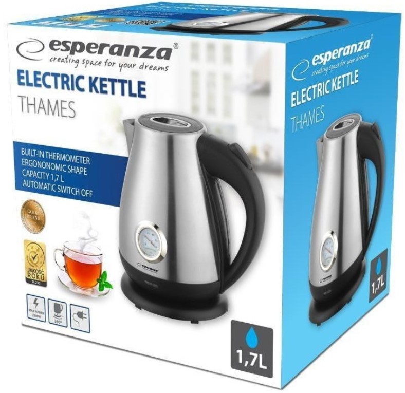 Чайник ESPERANZA EKK029 THAMES 1.7L с термометром, металл встроенный термометр вневременная и уникальная форма подходит для любого интерьера