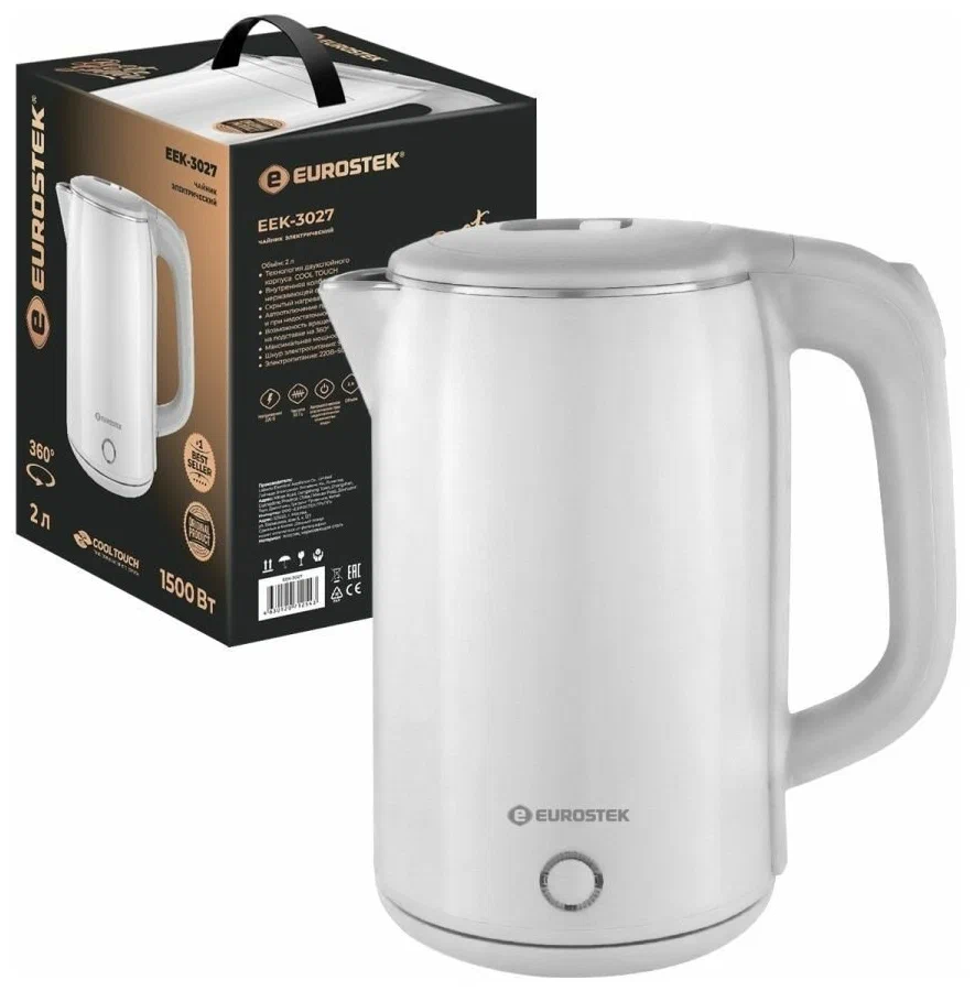 Чайник EUROSTEK EEK-3027 с технологией двухслойного корпуса COOL TOUCH, идеальное решение для Вашей кухни. Благодаря мощности в 1500 Вт и дисковому нагревательному элементу, он быстро вскипятит воду. Чайник установлен на подставке с возможностью поворота на 360°, а скрытый нагревательный элемент, удобная крышка и носик для наливания обеспечат комфортное ежедневное использование. Модель оснащена многоуровневой защитой: автоматическим отключением при закипании и отключением при недостаточном количестве воды. Отлично подойдет в подарок маме, бабушке, другу, папе на 8 марта, 23 февраля и новоселье.