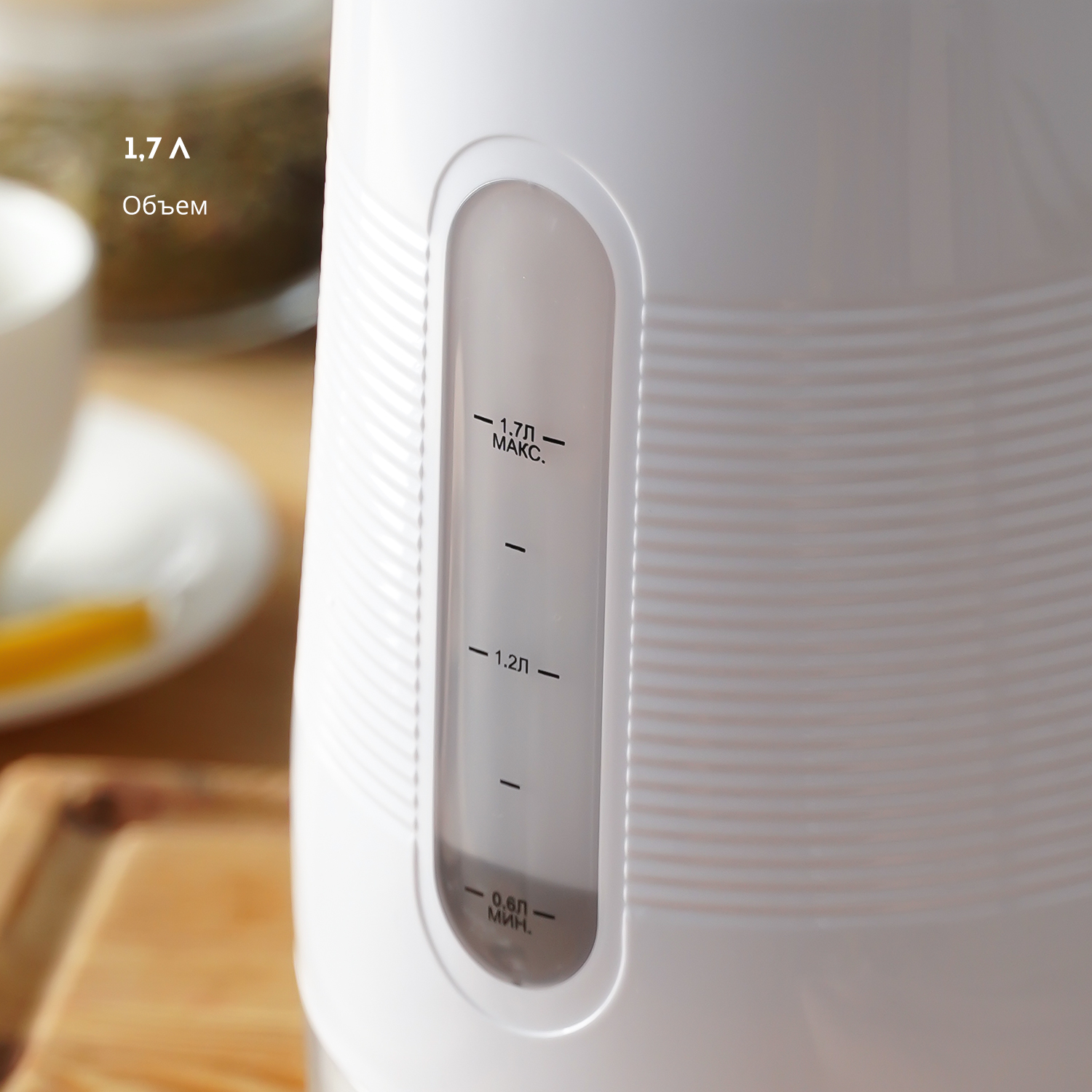 Оптимальный объем 1,7 литра в сочетании с высокой мощностью 2200 Вт обеспечивает быстрое закипание воды.