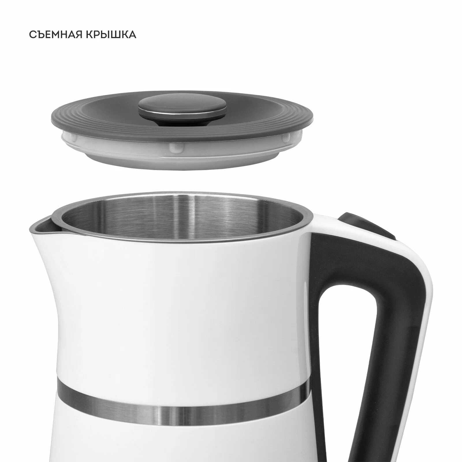 вращение на 360 градусов, двойные стенки, индикатор уровня воды, отсек для хранения шнура, съемная крышка