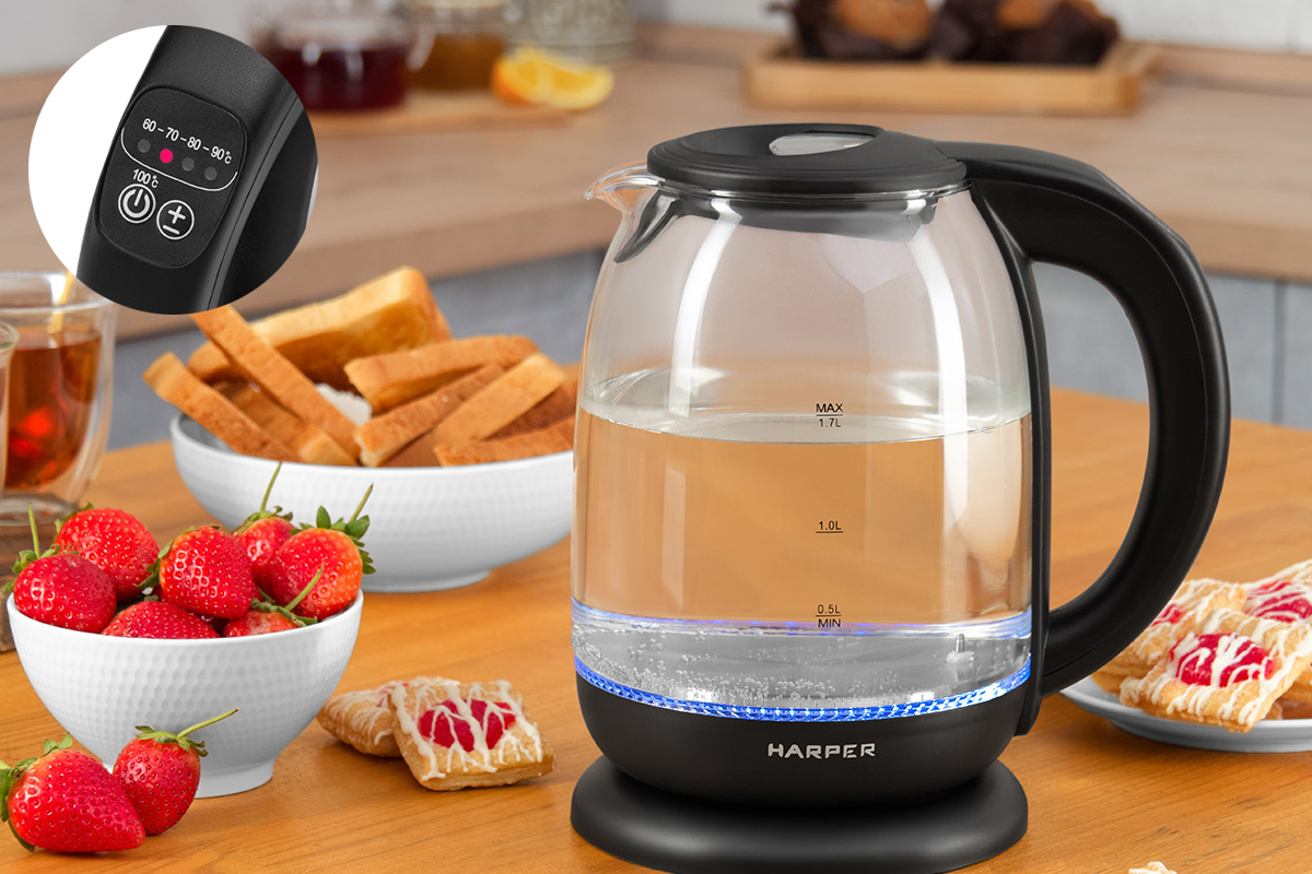 Электрический чайник Harper HWK-GD04 – это простой, функциональный и по-настоящему безопасный кухонный прибор. Имеет вместительную стеклянную колбу на 1,7 литра и закрытый ТЭН. Поэтому легко обслуживается и моется. При наливании кипяток фильтруется от механических примесей с помощью встроенного нейлонового фильтра. В чайнике предусмотрено сразу 3 уровня защиты: автоотключение при закипании, прекращение подачи питания при снятии с подставки, обнаружение недостаточного уровня воды. Есть режим поддержания нужной температуры.