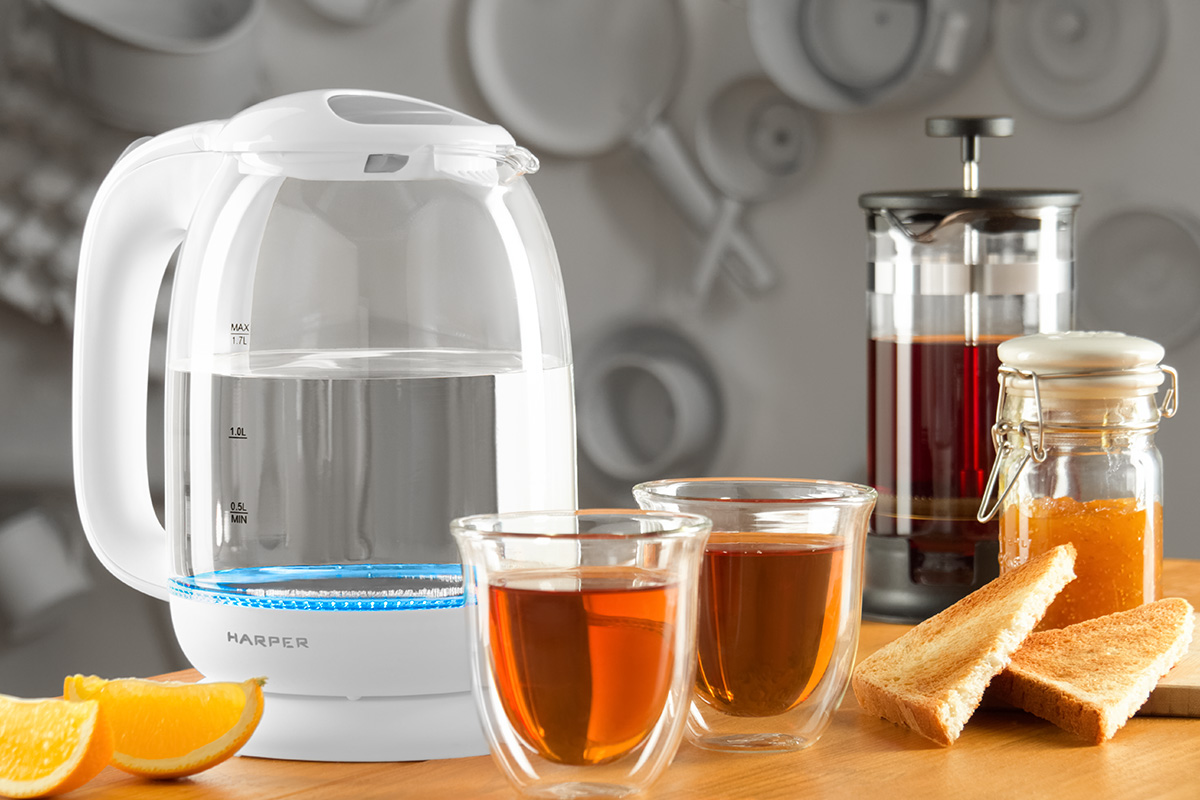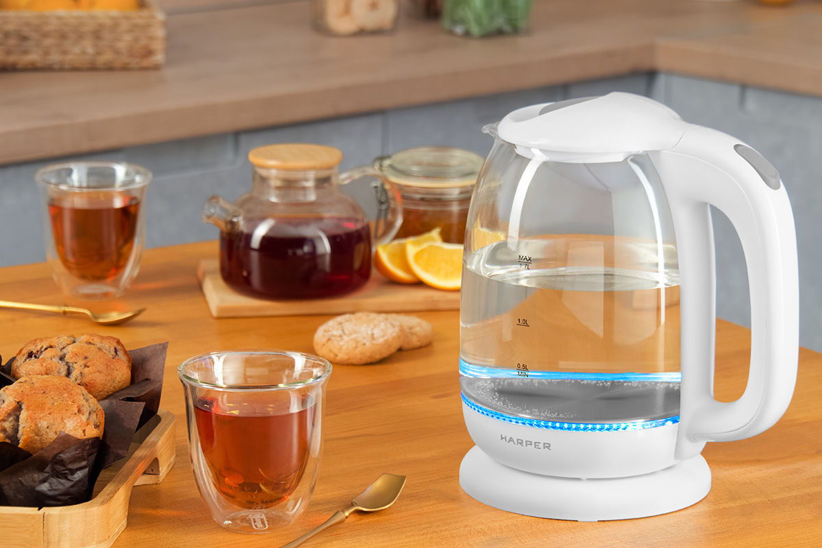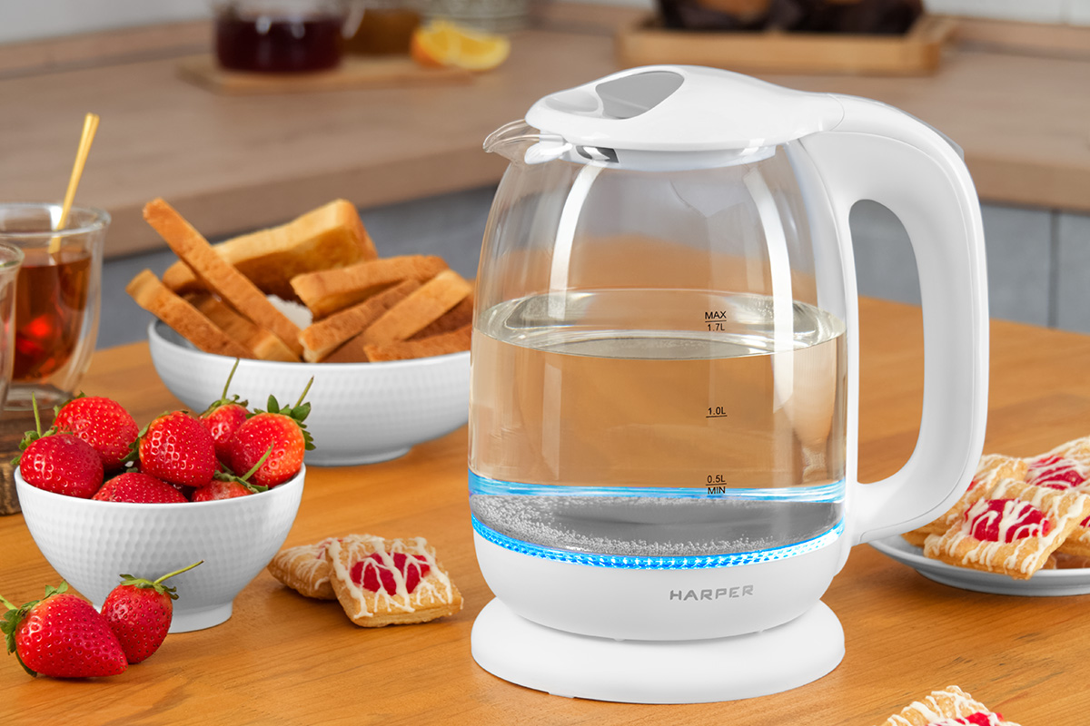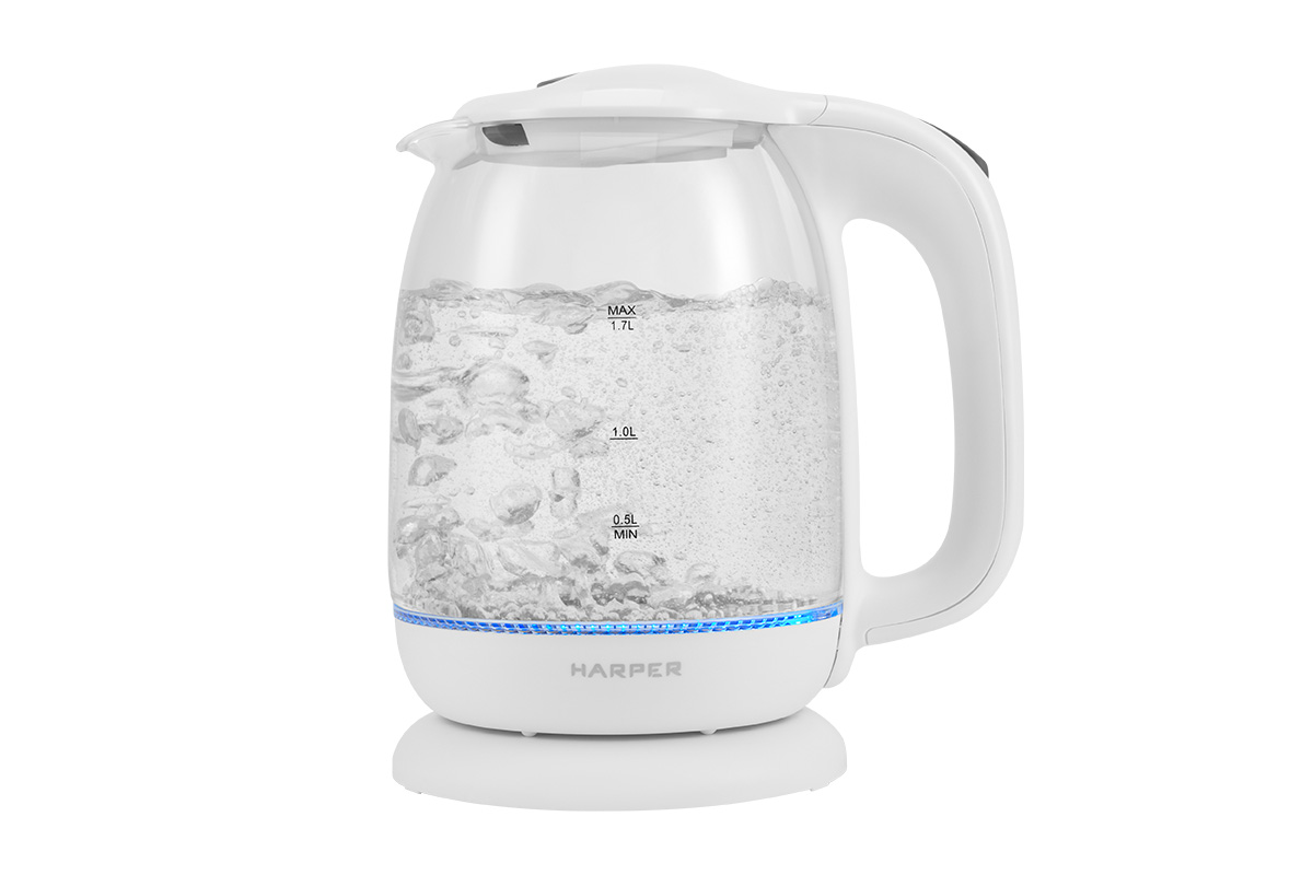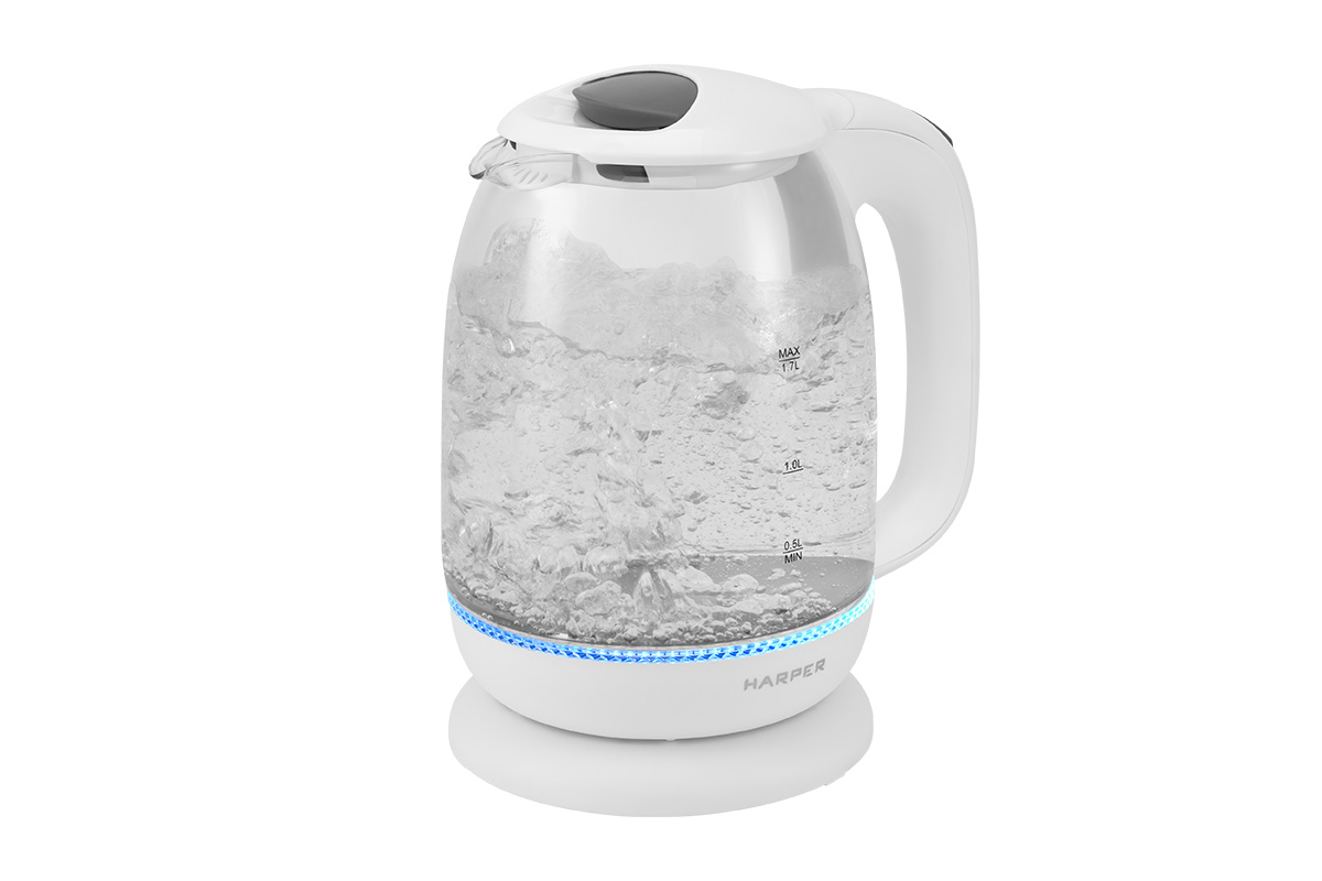 Электрический чайник Harper HWK-GM02 вместимостью 1.7 литра имеет закрытый тип нагревательного элемента и индикацию работы в виде синей подсветки. Корпус чайника Harper HWK-GM02 выполнен из прочного стекла, на котором нанесена шкала уровня воды, а широкая горловина чайника позволит легко набирать воду. За безопасность чайника Harper HWK-GM02 отвечает встроенный контролер, который обесточит ТЭН при отсутствии воды или прекратит подачу тока в случае снятия чайника с подставки.