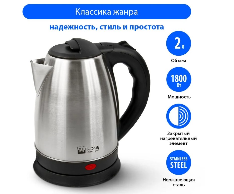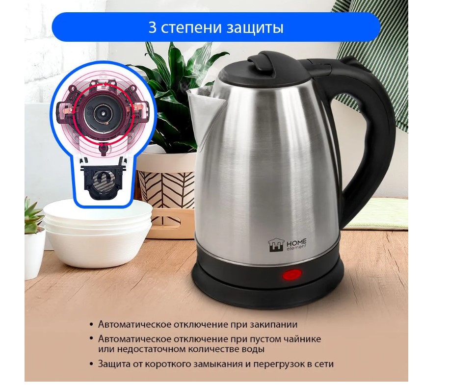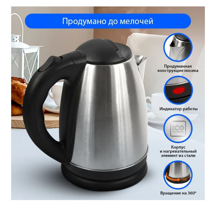 Отличный чайник объемом 2 литра для большой семьи, мощностью 1800 Вт. Вскипятит воду быстро. Автоматика отключит чайник, если в нем нет воды или она вскипела! Для удобства пользования чайник снабжен индикатором работы. Закрытый нагревательный элемент избавит от коррозии и накипи.