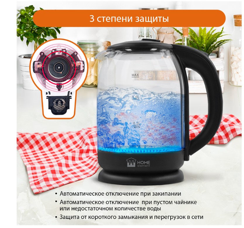 Чайник HOME ELEMENT HE-KT186 черный жемчуг