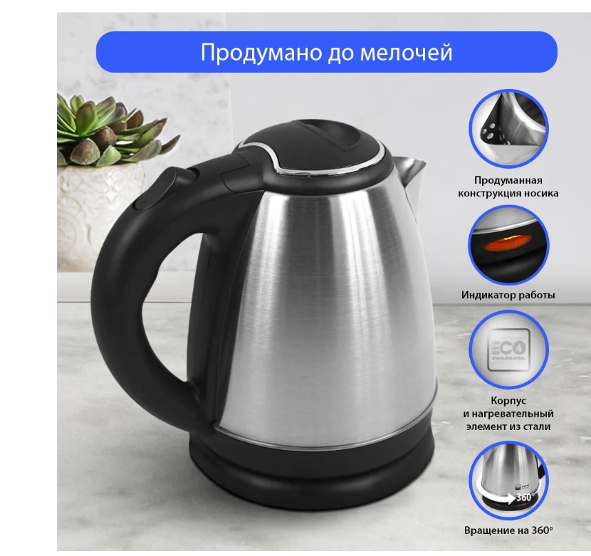 Отличный чайник на 1,7 литра для большой семьи, мощностью 1800 Вт. Вскипятит воду быстро. Автоматика отключит чайник, если в нем нет воды или она вскипела! Для удобства пользования чайник снабжен индикатором работы, и кнопкой открытия крышки. Закрытый нагревательный элемент избавит от коррозии и накипи.