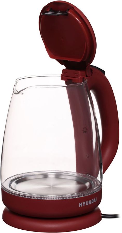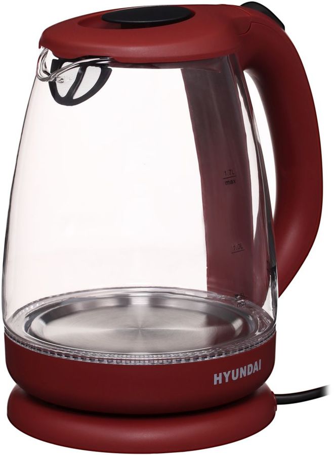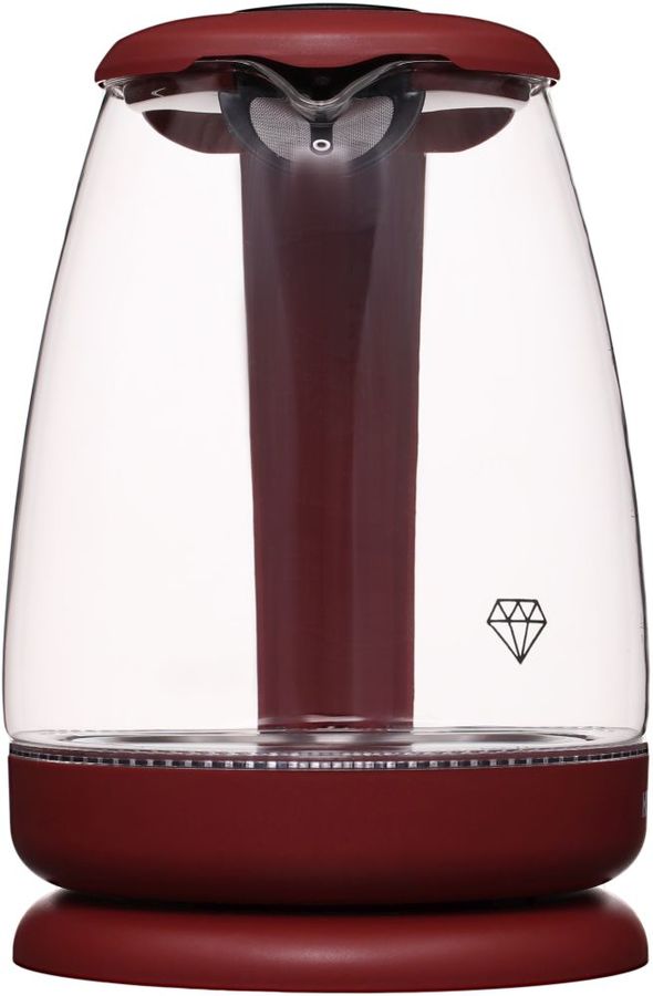 мощность 2200Вт; объем 1.7л; корпус стекло и пластик; фильтр от накипи, подсветка воды; цвет бордовый