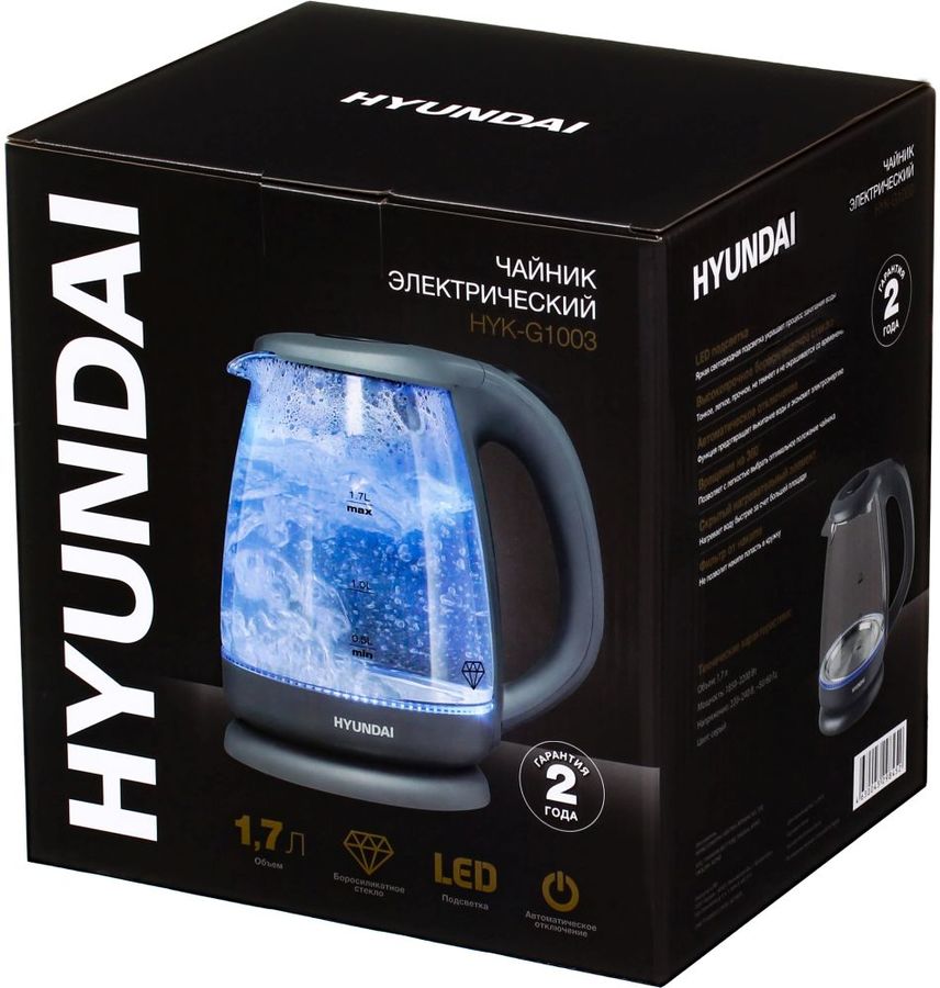 Особенности: В чайнике используется высококачественное боросиликатное стекло, легкое, прочное, не темнеет и не окрашивается со временем. Красивая голубая LED подсветка украшает процесс закипания и оповещает о включении прибора. 2 года гарантии.