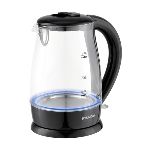 мощность 2200Вт; объем 1.7л; корпус стекло и пластик; фильтр от накипи, подсветка воды; цвет черный