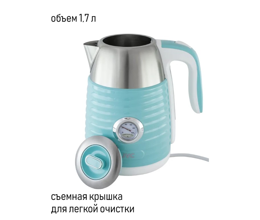 Стильный электрический чайник JVC JK-KE1726 с двойными стенками корпуса и датчиком температуры нагрева станет оригинальным украшением Вашей кухни и прекрасным подарком друзьям и родственникам.