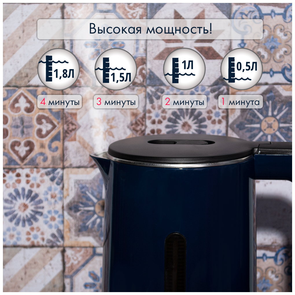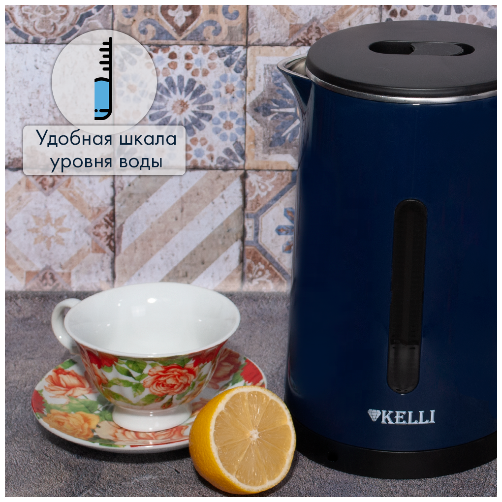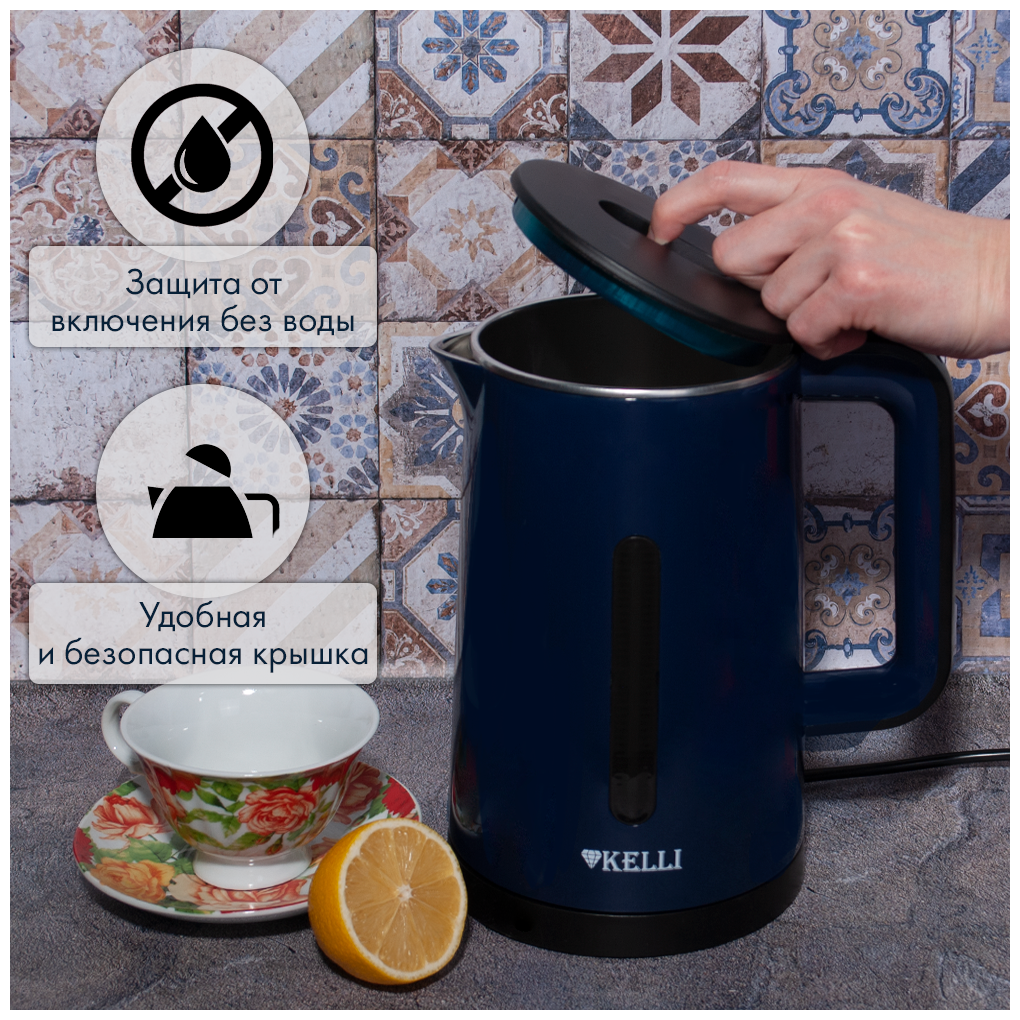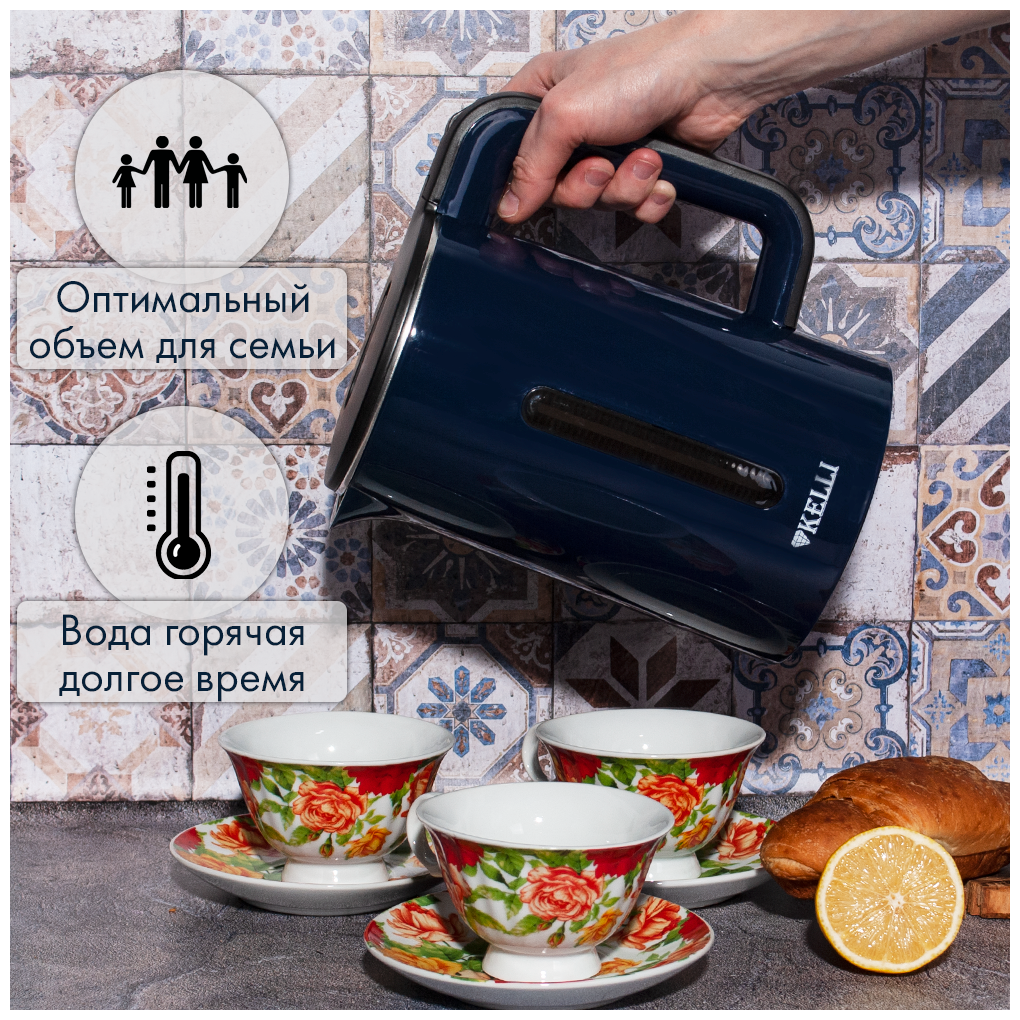 Современный и стильный электрический чайник Kelli KL-1375 это качественная и надежная модель, которая станет отличным помощником на кухне Вам, а также подарком для близких на Новый год или день рождения. Благодаря классическому насыщенному цвету, чайник будет хорошо смотреться на любой кухне. Объем 1.8 л идеален для семьи из 3-4 человек. Данная модель изготовлена из термостойких материалов, которые надолго сохраняют первозданный внешний вид. Устройство автоматически отключается при закипании и отсутствии воды, защищая ТЭН и другие компоненты от перегрева. Чайник снабжён световым индикатором включения. С Kelli KL-1375 вы забудете об ожидании и быстро приготовите горячий чай и другие напитки благодаря мощности в 2200 Вт. Двойные стенки не дают обжечься, а также сохраняют жидкость горячей долгое время. Основание круглой формы позволяет поворачивать модель на 360° и устанавливать в любом направлении, что способствует удобному использованию как левой, так и правой руками.
