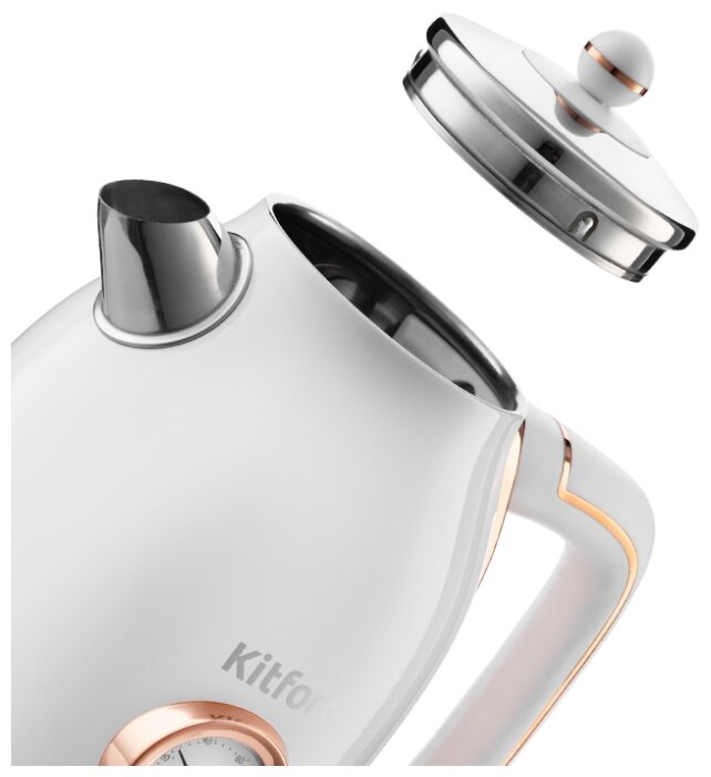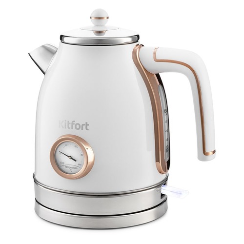 Описание: Чайник Kitfort КТ-6102 имеет встроенный термометр, выполненный в винтажном стиле. Это очень удобно для заваривания различных напитков, для которых требуется определённая температура воды. Например, зелёный чай, белый чай, кофе и тд.