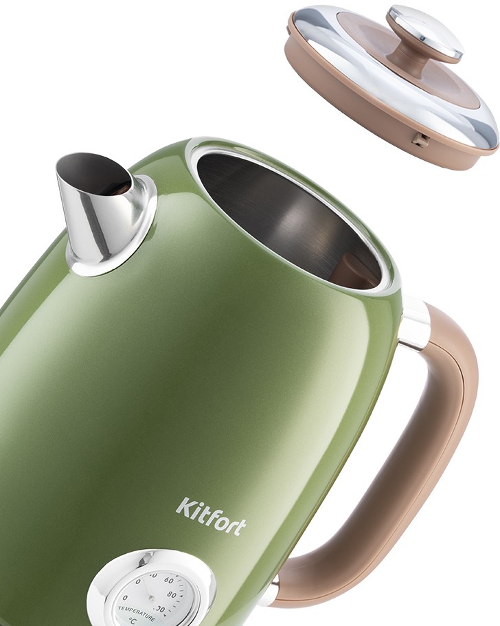 объем 1.7 л, мощность 2200 Вт, индикация включения, закрытая спираль, установка на подставку в любом положении, корпус из стали и пластика, вес 1.1 кг