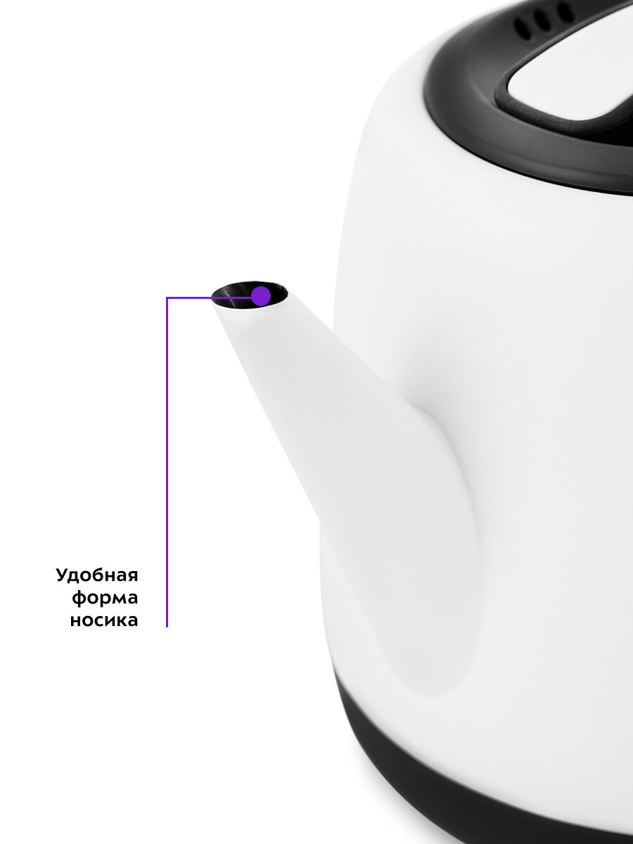 За один раз в чайнике можно вскипятить до 1 л воды. Этого хватит, чтобы приготовить горячие напитки на семью. В кнопку включения/выключения встроен индикатор нагрева.