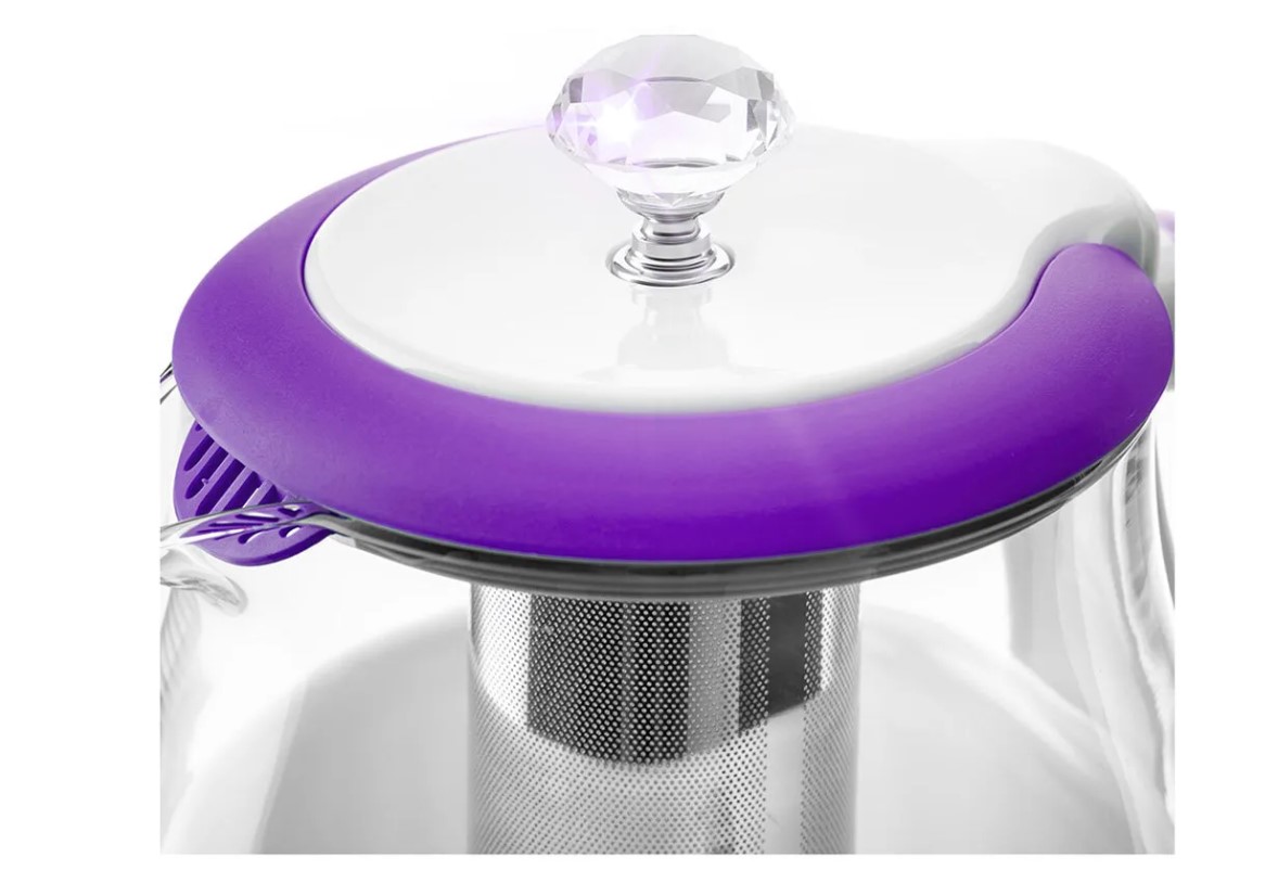 Чайник КТ-6129 моментально притягивает взгляды, и это неудивительно, ведь ручка крышки чайника выполнена в виде бриллианта. Изысканно, не правда ли?