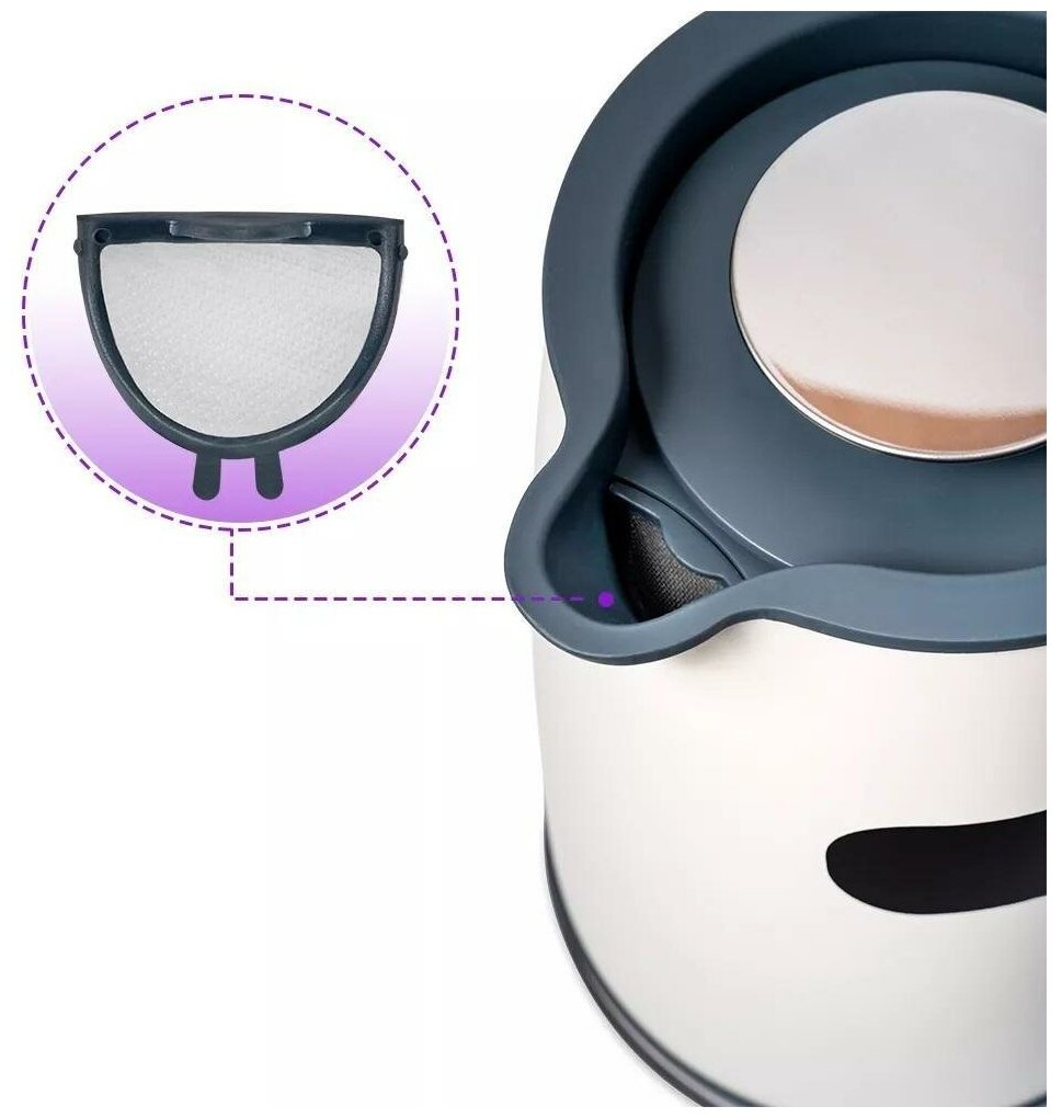 Индикатор включенияестьИндикатор уровня водыестьФильтр от накипиестьАвтоматическое отключениеестьПодставка 360 градусовдаЗащита от включения без водыестьЗвуковой сигнал при закипанииестьКорпус